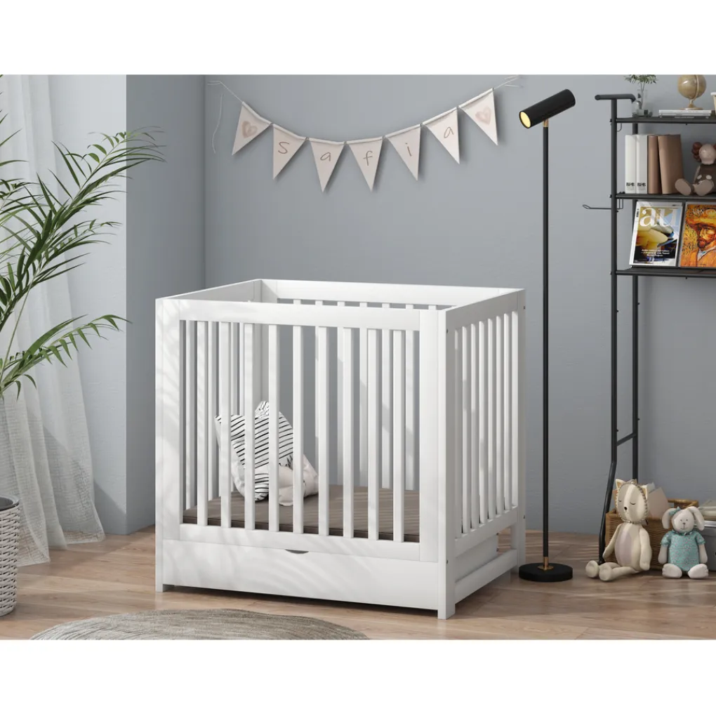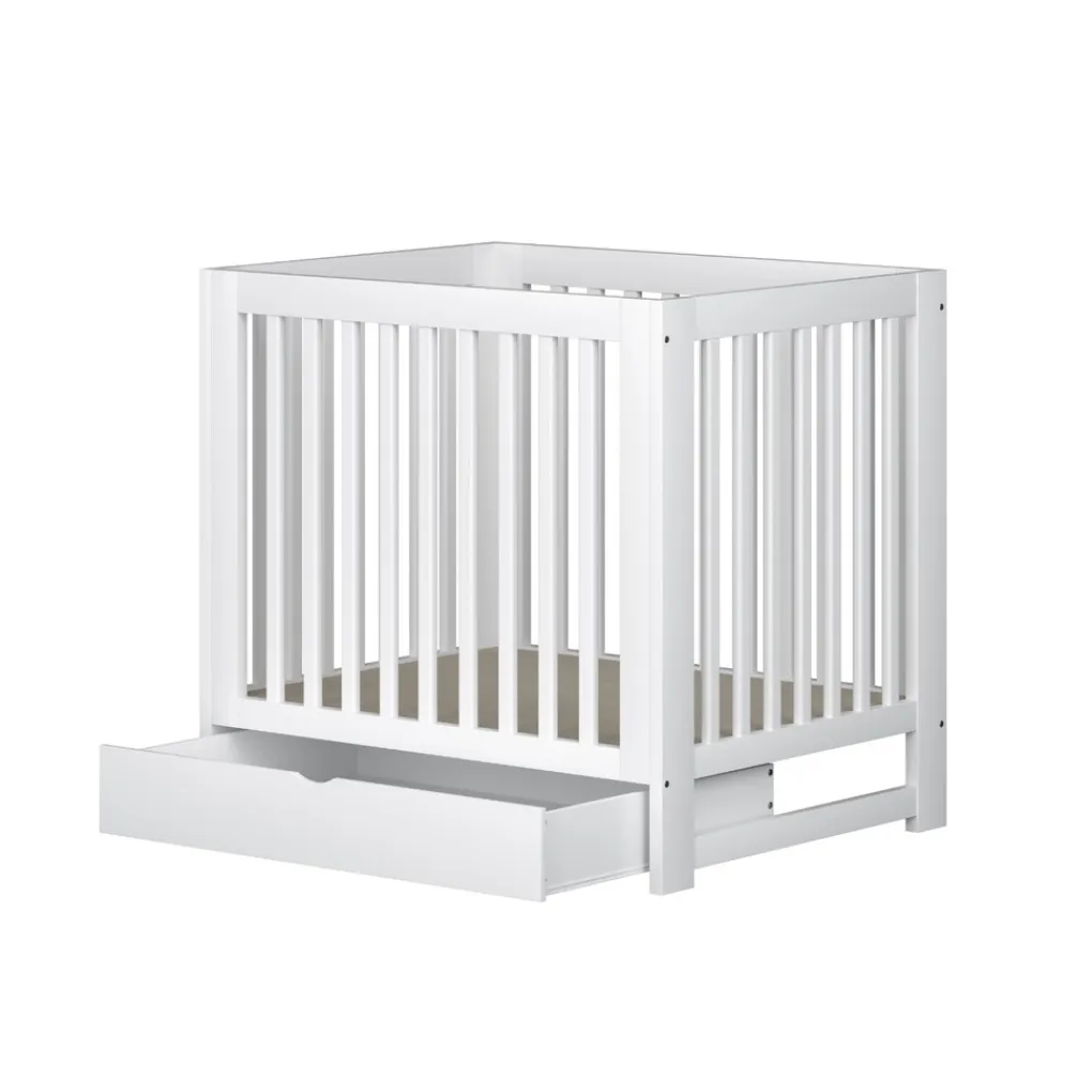 Dankzij de ruime lade onderin de box heb je altijd alle benodigdheden binnen handbereik. Of het nu gaat om speelgoed, kleding of luiers, de opberglade zorgt ervoor dat je de kamer netjes en georganiseerd houdt. Dit maakt de box niet alleen functioneel, maar ook een praktische toevoeging aan de babykamer.