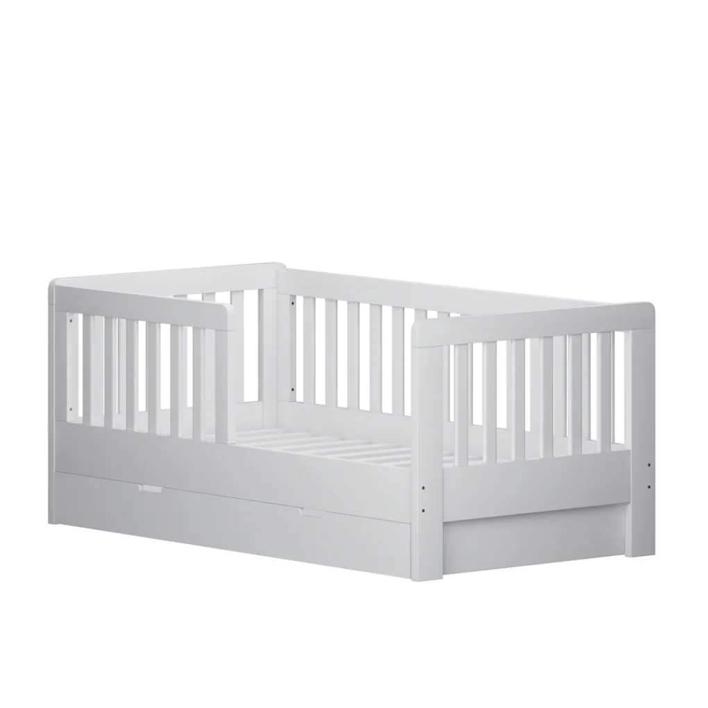Peuterbed Joan biedt een veilige en stijlvolle slaapplek voor je kindje. Het peuterbed heeft een strakke witte kleur, waardoor het mooi zal staan in iedere ruimte. Het bed biedt niet alleen optimaal comfort, maar ook slimme opbergruimte dankzij de handige lade onder het bed. Hierin kan speelgoed, beddengoed of wat anders overzichtelijk worden opgeborgen. Ideaal voor een opgeruimde kinderkamer!