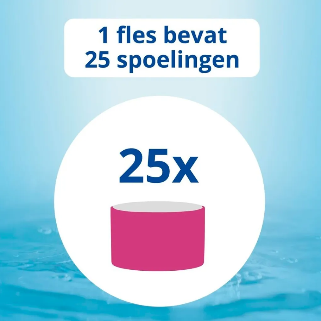 Gebruik 10 ml per spoelbeurt. Vul de dop tot