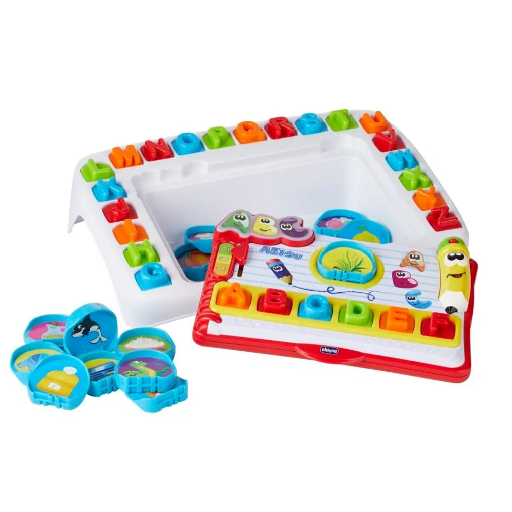 Het alfabet leren wordt een leuk feestje voor je kleine met de Chicco Lees en Leer Schoolbank! Spelenderwijs vorm je kleine woordjes met de losse blokjes letters.