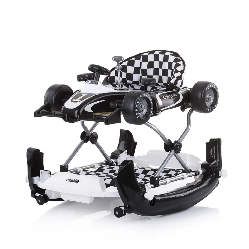 Met deze hippe 4-in-1 Loopstoel Racer van het merk Chipolino kan je kindje zelfstandig op avontuur gaan! De 4-in-1 loopstoel is zowel een loopstoel, als activiteitencentrum, schommelstoel en een duwwagen. Je kindje kan zich hier dan ook uren mee vermaken en uiteindelijk oefenen met zijn of haar eerste stapjes.