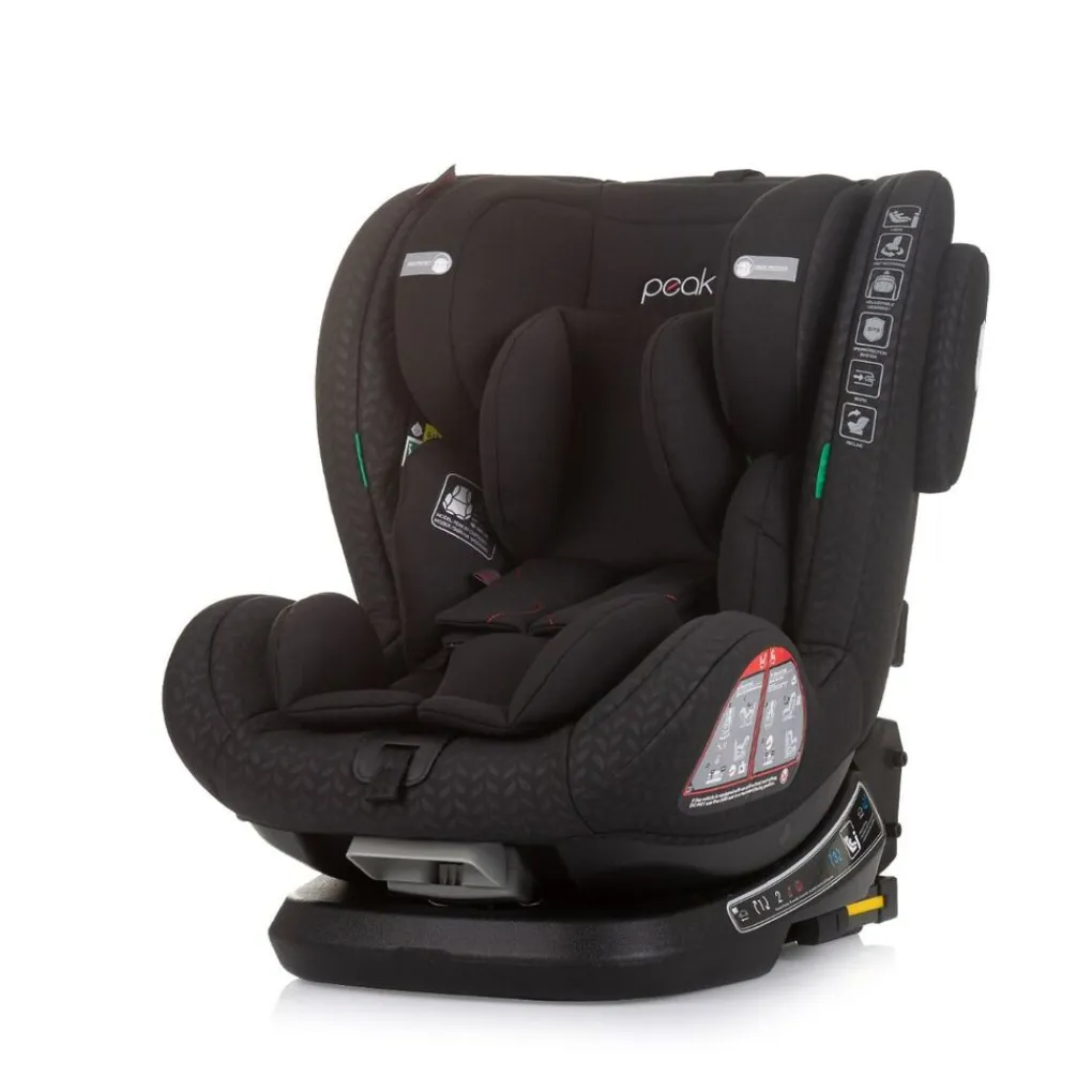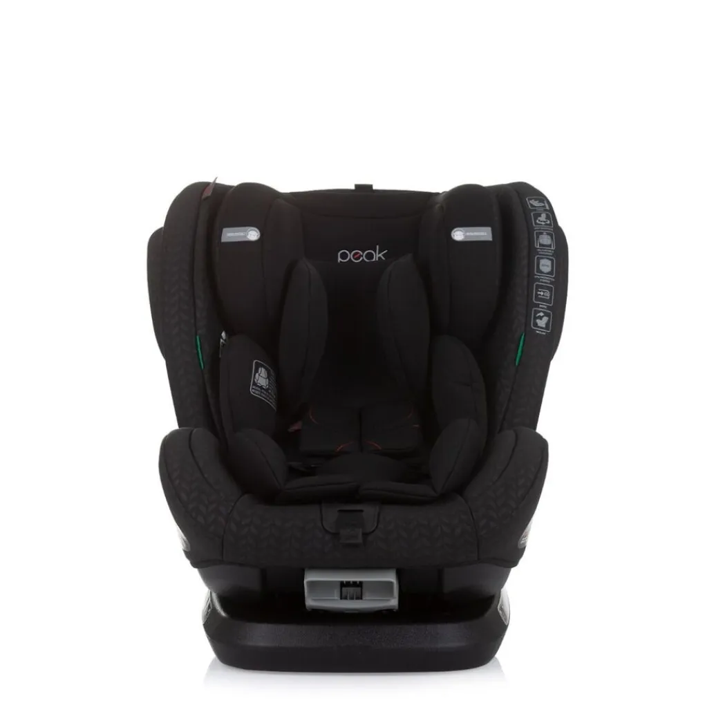 Met de autostoel Peak kun je jaren vooruit; de stoel is namelijk geschikt vanaf de geboorte tot 140cm (ongeveer 12 jaar). De stoel is bevestigd op een basis, waardoor de stoel 360 graden draaibaar is. Zo kun je je kindje gemakkelijk in de auto zetten. De basis is eenvoudig aan het chassis van de auto te bevestigen doormiddel van de Isofix-haken die aan de basis zijn bevestigd. Deze comfortabele I-size autostoel biedt goede bescherming tegen een zijwaartse impact. Tot je kindje 105 cm is wordt aangeraden de stoel tegen de rijrichting in te plaatsen voor optimale veiligheid. Je hebt ook de mogelijkheid om het zitje te bevestigen met de autogordel als je kindje tussen de 100-140 cm groot is.
