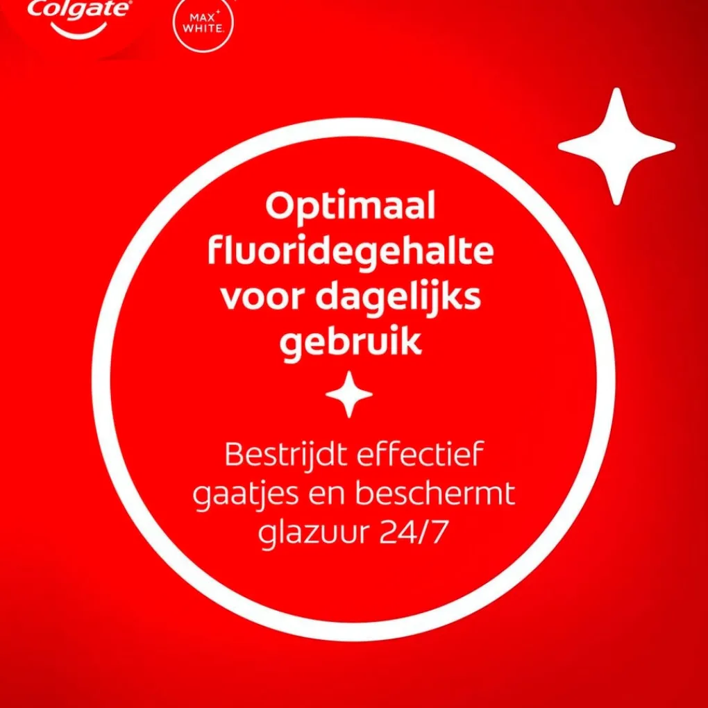 Poets je tanden met de Colgate Max White Expert Purifying Power Tandpasta en verblind iedereen met een wittere glimlach in vijf dagen! De tandpasta met waterstofperoxide en micellaire reinigingstechnologie verwijdert onzuiverheden.