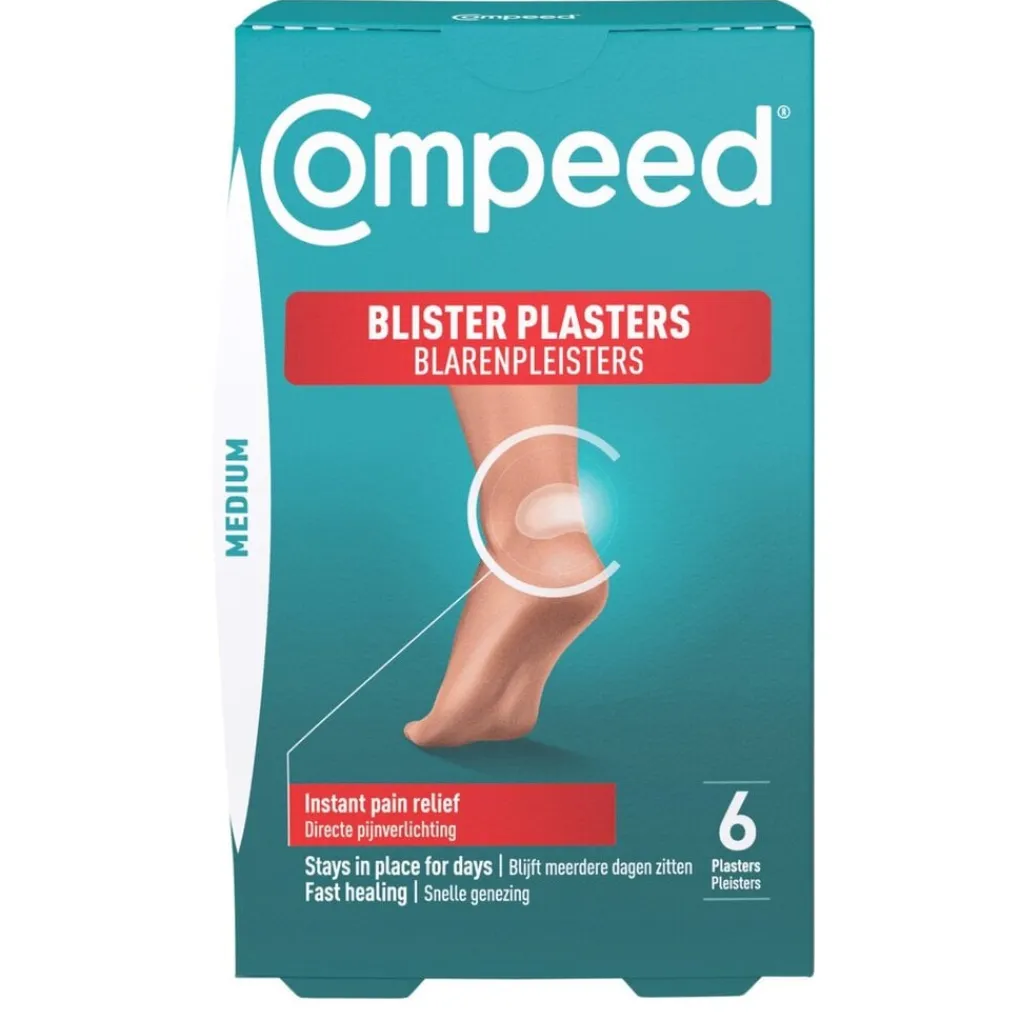 Compeed Medium Blaarpleisters verlichten onmiddellijke de pijn en druk van je blaar. Daarnaast zorgen ze voor een snel herstel en beschermen ze tegen wrijving.