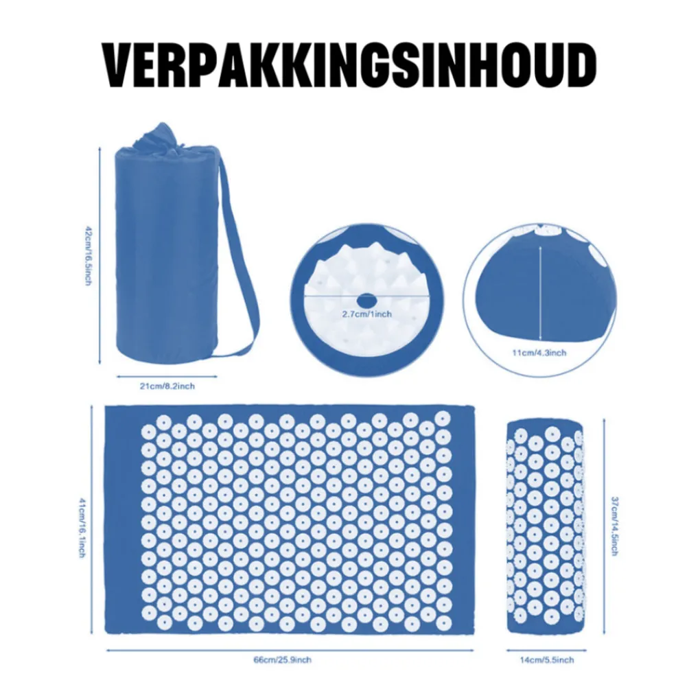 De zachte mat set is uitermate groot waardoor je een groot deel van je lichaam kunt verzorgen. In tegenstelling tot veel matten die alleen uw rug bedekken, bevat deze set een kussen bedekt met acu-drukpunten voor neksteun. Met deze complete kan je pijn zo veel mogelijk verlichten.