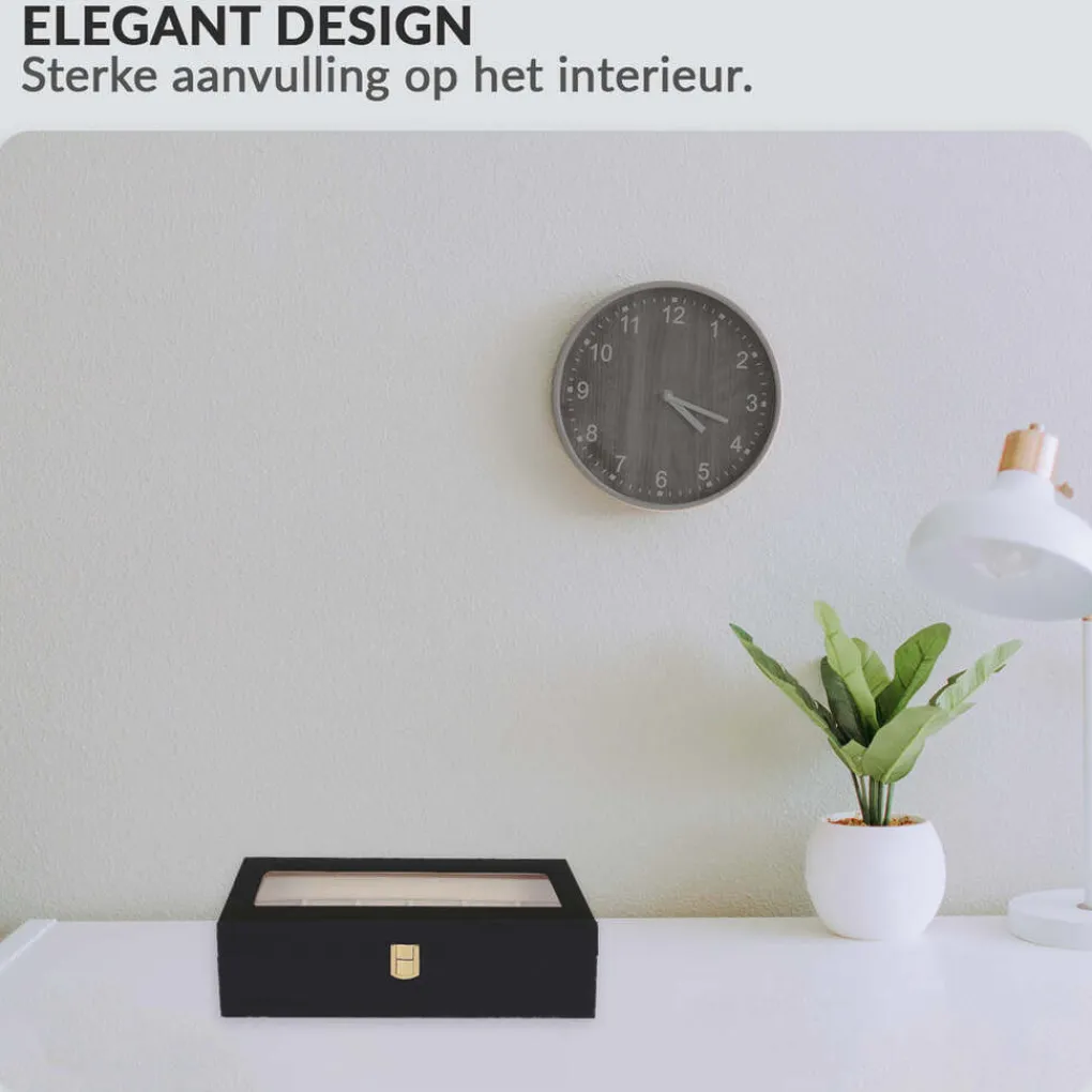 Zoekt u een praktische en elegante opbergdoos voor uw horloges en sieraden? Zie dan de horlogeboxen van Confibel. Deze 6 compartimenten horlogebox is uitgerust met een kijkvenster en biedt plaats voor 6 horloges/sieraden. Een horloge/sieraad is een duurzaam product die zowel een hoog financieel als emotioneel waarde kan hebben. De minimalistische horlogebox van Confibel is simpel maar puur. . Niet alleen het ontwerp van de doos doet overtuigen, maar deze beschermt tevens uw waardevolle geprefereerde voorwerpen tegen stof, stoten en krassen. Bestel nu je horloge box en bescherm je waardevolle horloges en armbanden tegen schade en stof.
