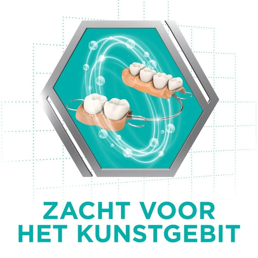 2. Na 15 minuten weken, de gebitsprothese met de oplossing en een zachte tandenborstel afborstelen.