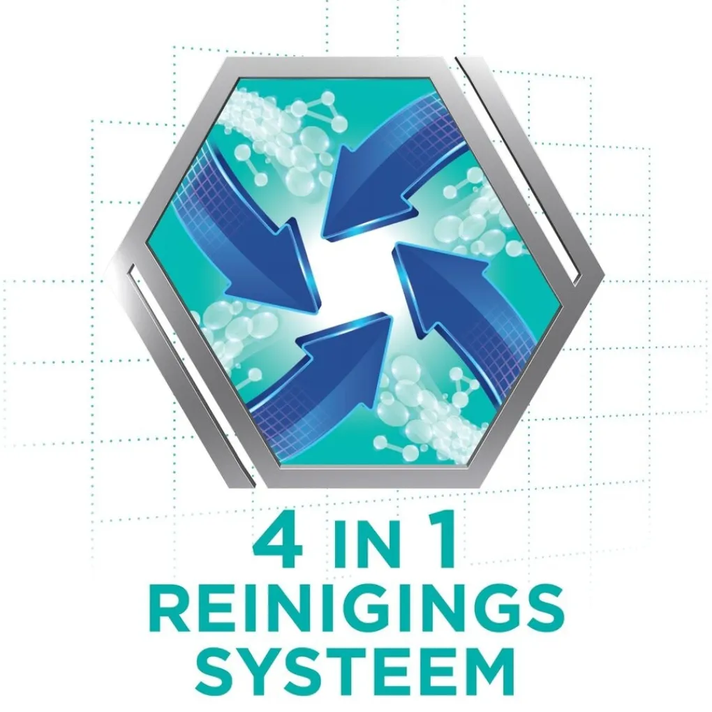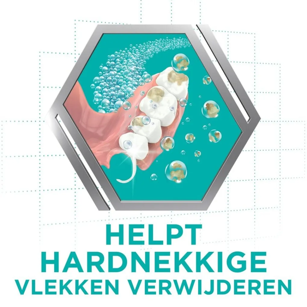 INGREDIËNTEN: Sodium bicarbonate, Citric Acid, Potassium caroate (Potassium Monopersulfate), Sodium carbonate, Sodium carbonate peroxide, TAED, Sodium Lauryl Sulfate, PEG-180, Sodium benzoate, VP/VA copolymer, Aroma, Cellulose Gum, CI 42090, CI 73015, CI 19140, CI 19140