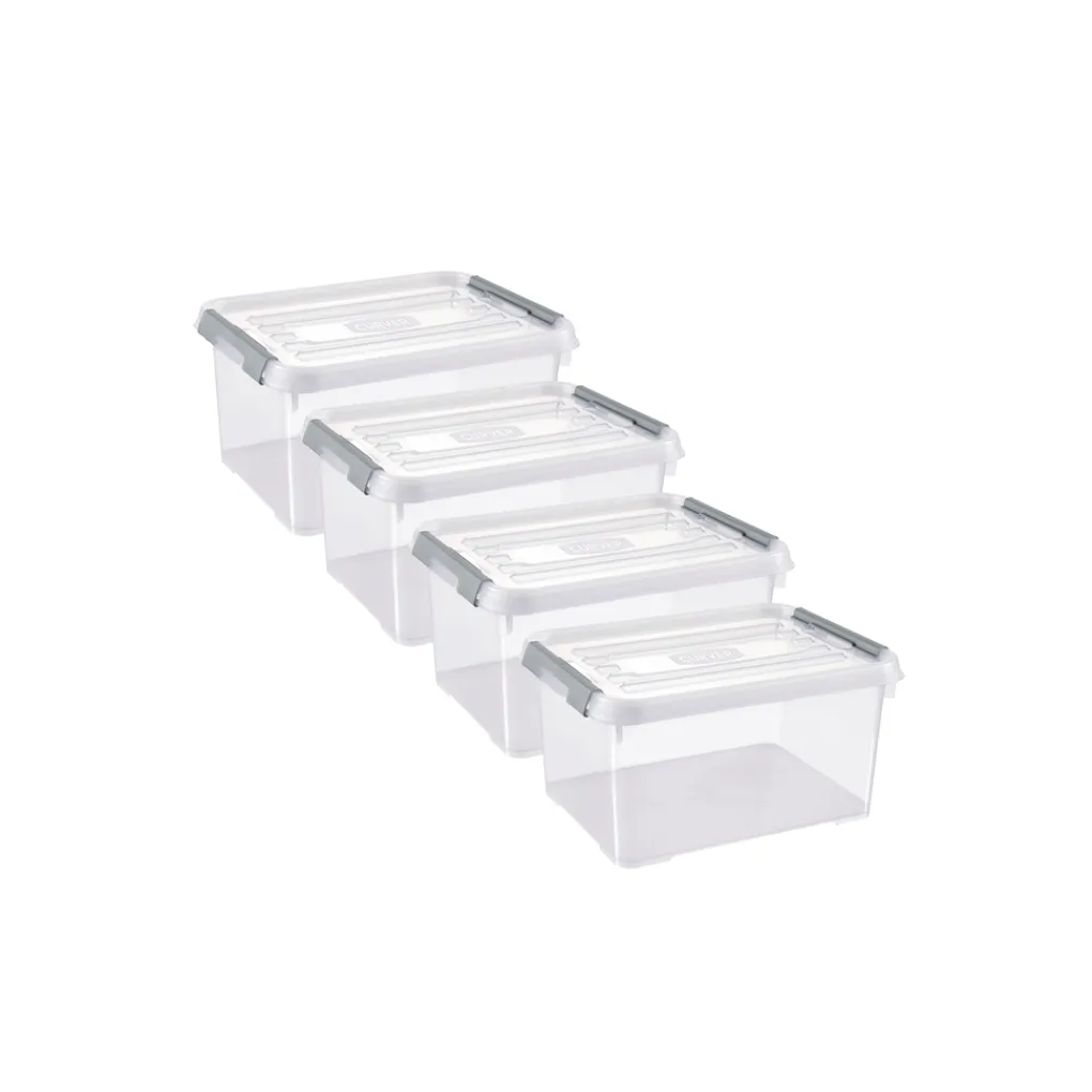 Curver Handy+ opbergbox – 15L – 4 stuks – Transparant met deksel