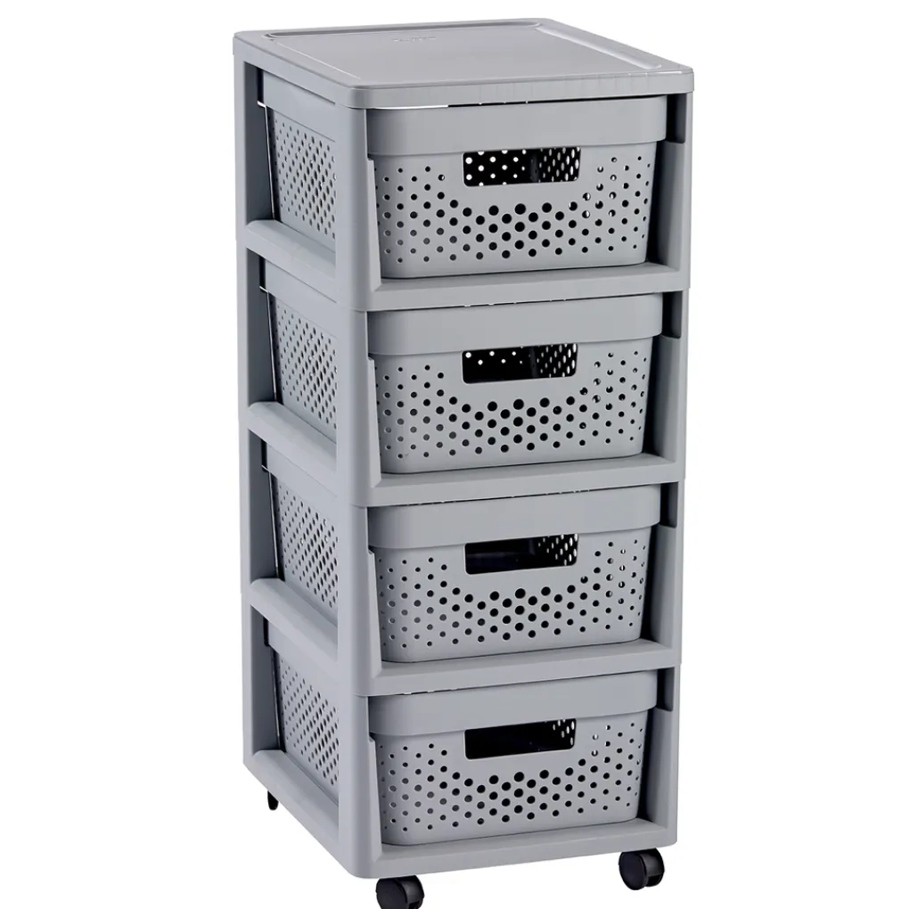 Geef elke ruimte een rustige, georganiseerde uitstraling met een Curver Infinity Ladesysteem. Dankzij het tijdloze, Scandinavische design en de praktische indeling met 4 lades van 11L creëer je in een handomdraai overzicht in badkamer, slaapkamer, woonkamer of kantoor. Licht, duurzaam en eenvoudig te verplaatsen: dit is slimme opslag die meebeweegt met jouw dagelijkse routine.