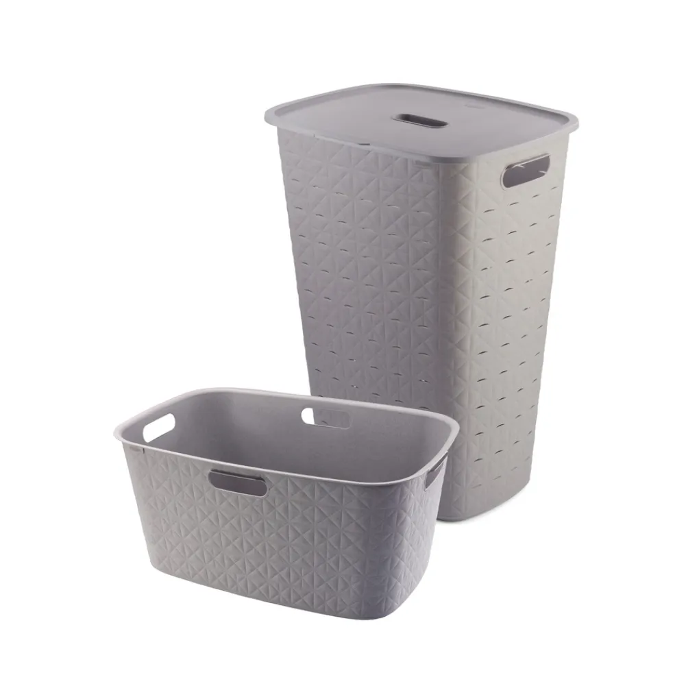 - Curver Softex Wasmand met Deksel 56L + Curver Softex Wasmand 45L – Taupe