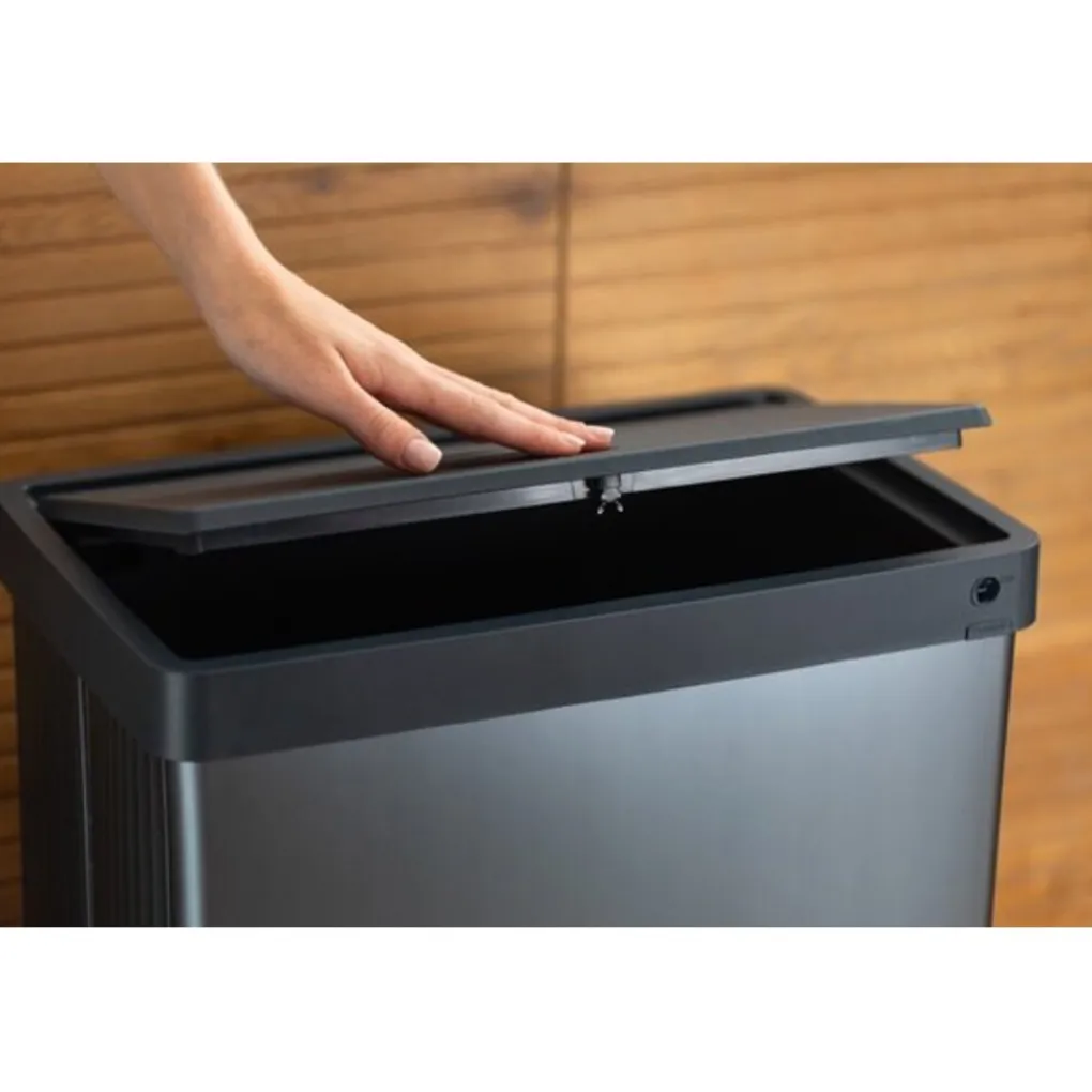 Het praktische touch-deksel opent soepel met één druk, terwijl de omsluitende rand de afvalzak netjes uit het zicht houdt. De antislipvoetjes zorgen voor extra stabiliteit, en dankzij het hoogwaardige kunststof is deze prullenbak roest-, deuk- en vingerafdrukbestendig. Bovendien is hij volledig recyclebaar, gemaakt van 70% gerecycled materiaal en wordt de Verto prullenbak geleverd met een garantie van 5 jaar.