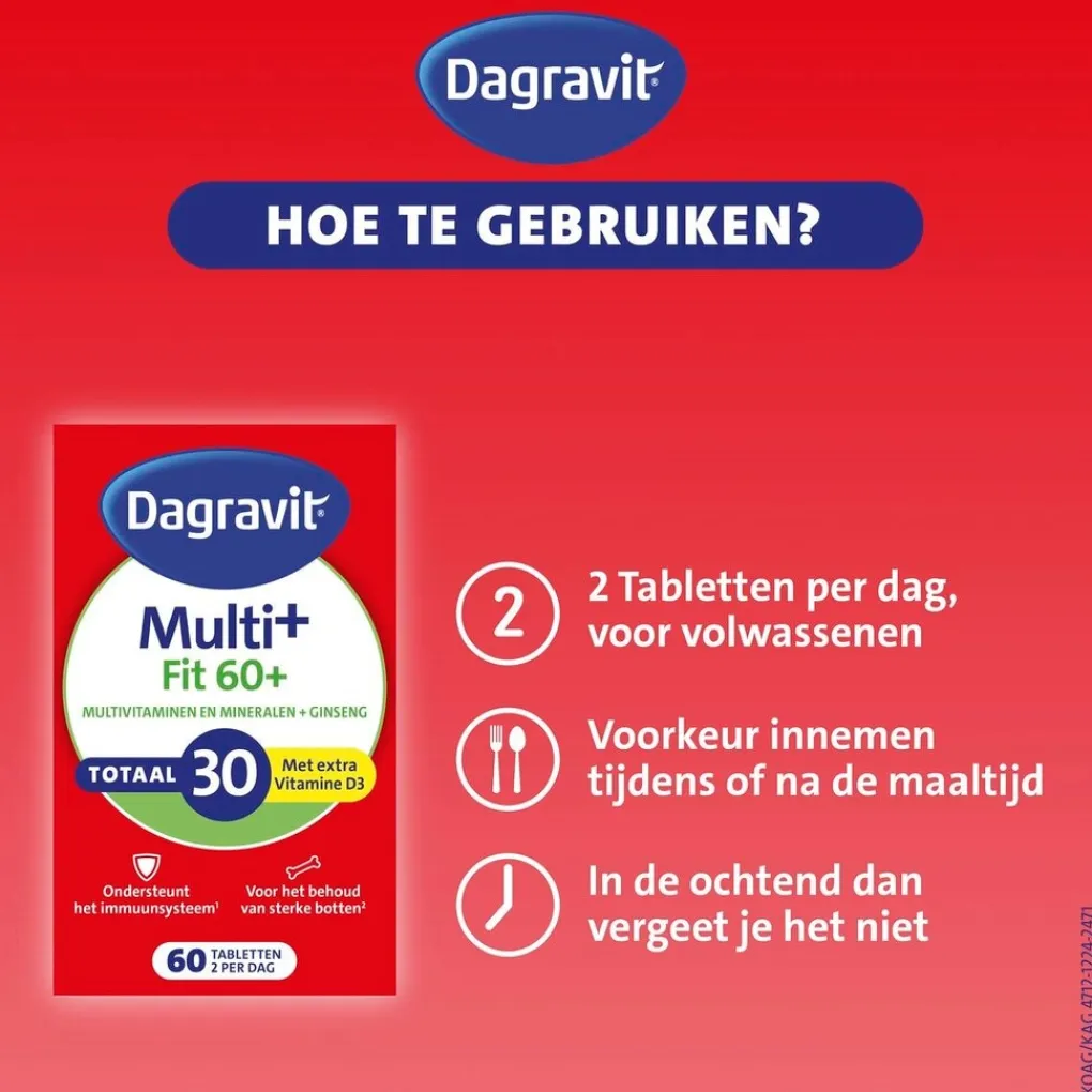 Hoe gebruik je de Dagravit Totaal 30 Vitaal 60+ Multivitaminen Tabletten?