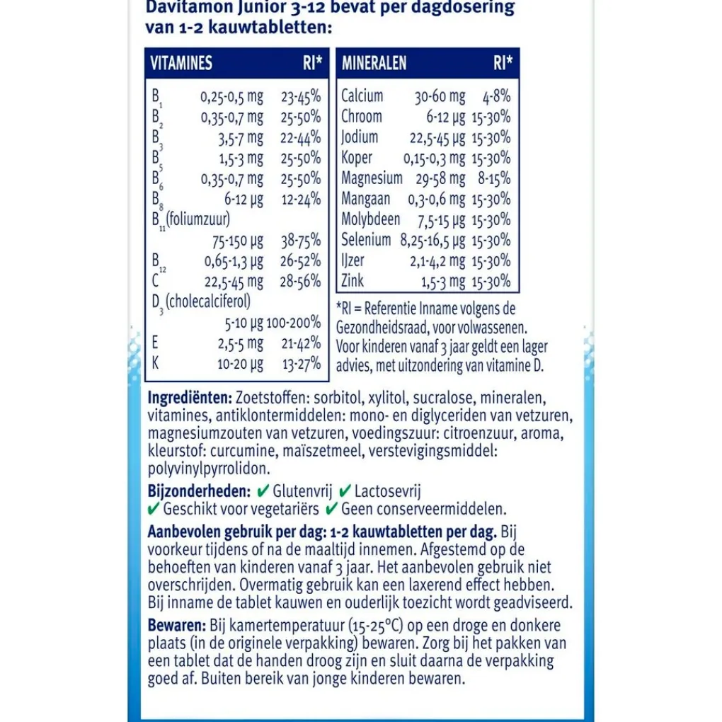 Samenstelling:# Davitamon Junior 3-12 bevat
