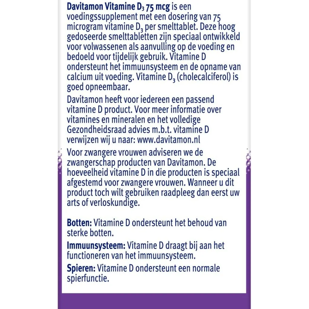 smelttablet bevat 75 microgram vitamine D en is bedoeld voor tijdelijk gebruik