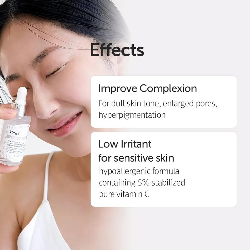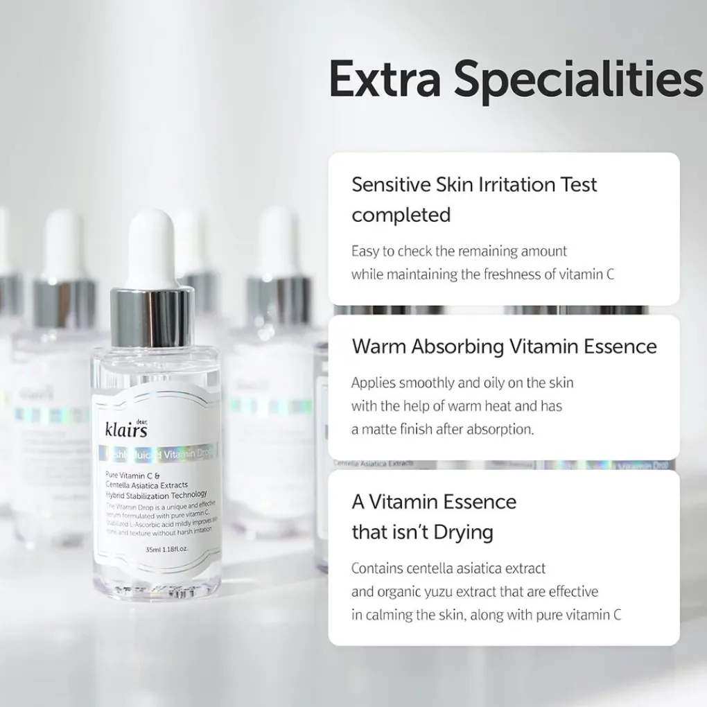 Dear, Klairs Freshly Juiced Vitamin Drop is een krachtige vitamine C-serum dat helpt bij het verhelderen van de huid en het verminderen van pigmentvlekken en acnelittekens. Dankzij de milde formule met ascorbinezuur (pure vitamine C) is het geschikt voor de gevoelige huid en helpt het om de huidtextuur te verbeteren en een egale teint te bevorderen. De lichte, niet-irriterende textuur zorgt voor een frisse en stralende uitstraling.