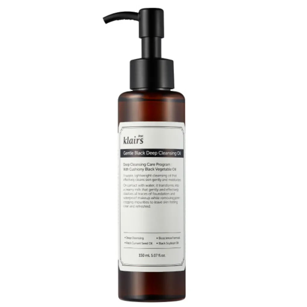 De Gentle Black Deep Cleansing Oil is een milde maar effectieve reinigingsolie die make-up, zonnebrand en onzuiverheden moeiteloos verwijdert zonder de huid uit te drogen. Verrijkt met zwarte sesamolie, zwarte bonenolie en zwarte bessenextract, helpt deze olie de talgproductie te reguleren, de huid te verzachten en de vochtbarrière te versterken. De formule is geschikt voor alle huidtypes, zelfs de gevoelige huid, en laat de huid schoon, kalm en gehydrateerd achter.
