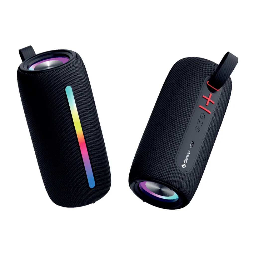 Met de BTL360 draadloze Bluetooth speaker van Denver kun je ten allen tijde van jouw favoriete muziek genieten! Dankzij de geïntegreerde RGB lichteffecten wordt het beluisteren van muziek met deze draagbare speaker een waar genot! De TWS-pairing functie biedt de mogelijkheid om twee speakers draadloos aan elkaar te koppelen. Bovendien is de speaker uitgerust met diverse ingangen waaronder: MicroSD, USB en AUX.Ten slotte is de Bluetooth speaker ook voorzien van een handige handsfree belfunctie!