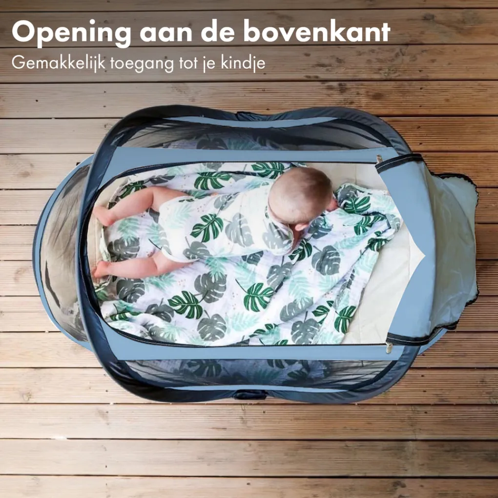 De DERYAN Baby Box is de perfecte vervanger van het zware campingbedje. Met zijn 1,5 kg neem je hem gemakkelijk mee op vakantie, op bezoek, naar het park, etc.