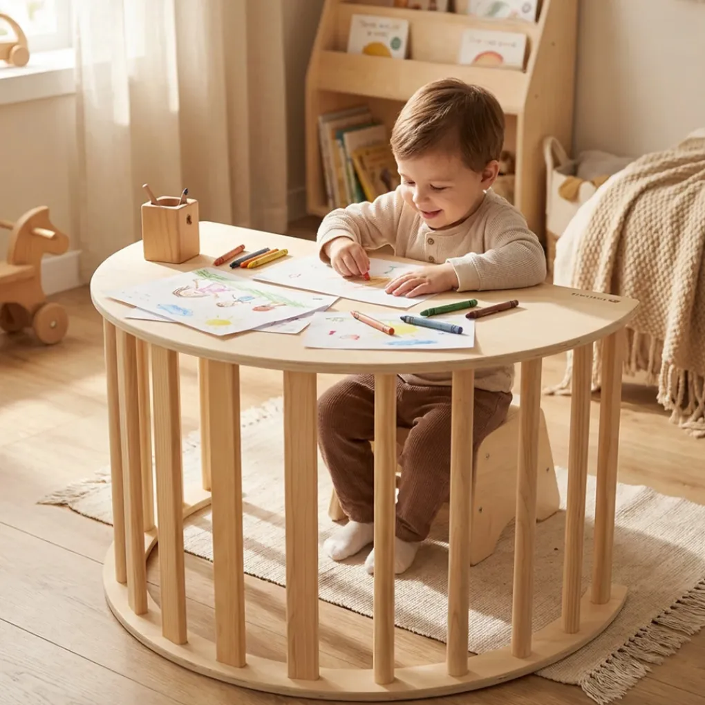 Creëer een veilige, inspirerende en veelzijdige speelomgeving met deze houten speelboog en multifunctionele kindertafel – een onmisbaar duo voor elke ouder die waarde hecht aan kwaliteit, design en spelenderwijs leren.