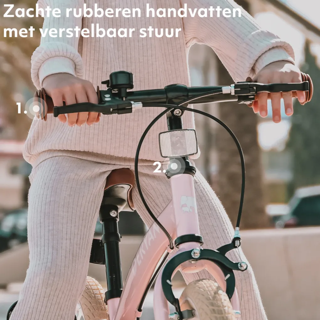 Zowel het stuur als het zadel zijn eenvoudig in hoogte aan te passen aan de lengte van je kind. Zo groeit de fiets mee en blijft hij jarenlang comfortabel in gebruik.