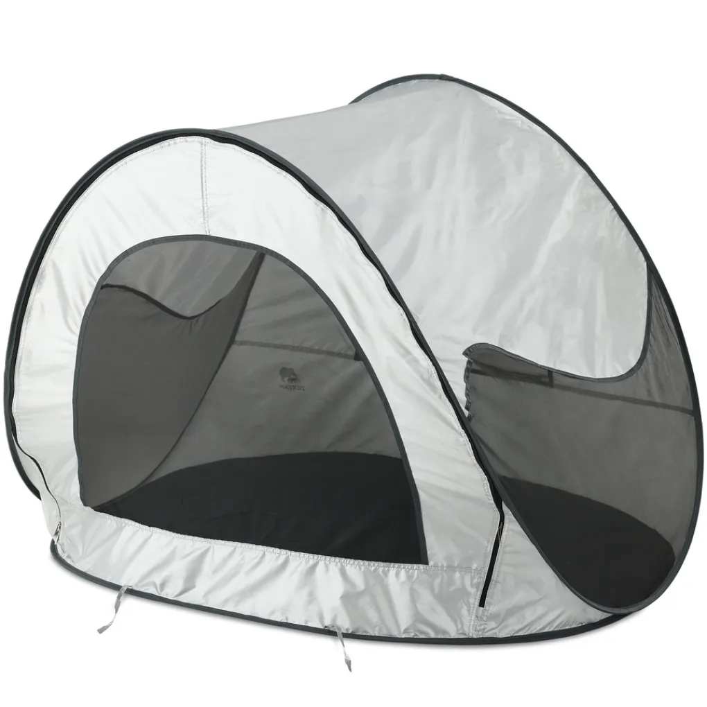 Het is snel op te zetten en in elkaar te vouwen. Naast dat het licht van gewicht is, biedt de Deryan Beachtent extra bescherming tegen wind en zand. De Beachtent bevat een aflopende vorm, waardoor hij goed de wind in gepositioneerd kan worden. Tevens zit er een raam van mesh achterin de tent, welke desgewenst dichtgemaakt worden. Aan de achterzijde van de tent bevinden zich lusjes om de DERYAN Beachtent door middel van haringen vast te zetten, alsook zakjes om met zand de stevigheid te optimaliseren. De Beachtent is gemakkelijk te dragen met de handige draagtas.
