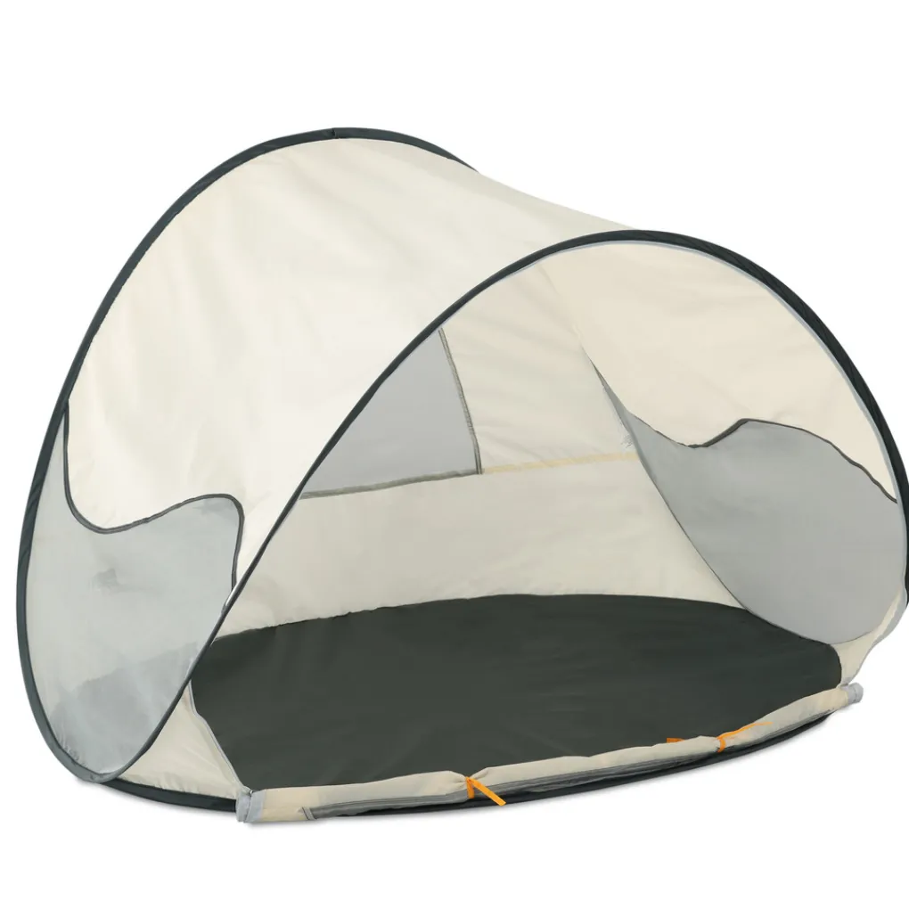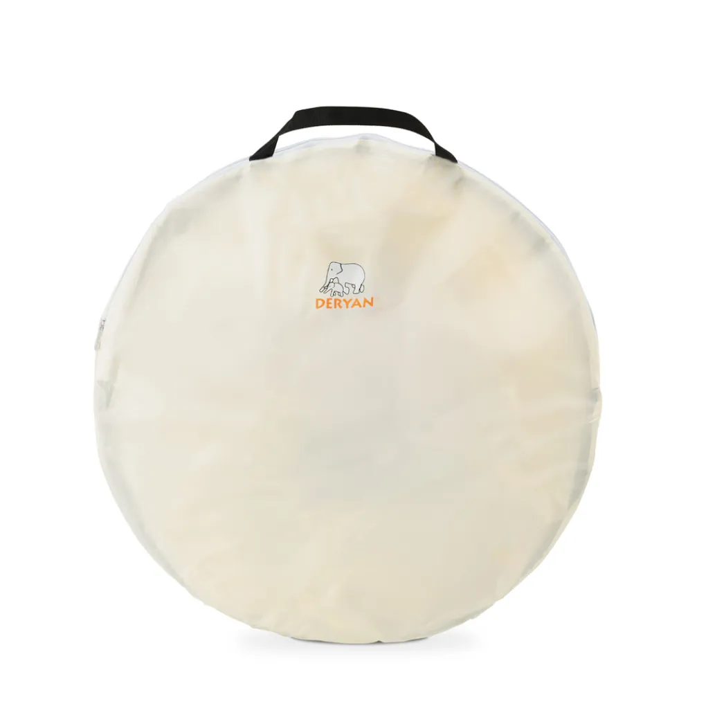 Het is snel op te zetten en in elkaar te vouwen. Naast dat het licht van gewicht is, biedt de Deryan Beachtent extra bescherming tegen wind en zand. De Beachtent bevat een aflopende vorm, waardoor hij goed de wind in gepositioneerd kan worden. Tevens zit er een raam van mesh achterin de tent, welke desgewenst dichtgemaakt worden. Aan de achterzijde van de tent bevinden zich lusjes om de DERYAN Beachtent door middel van haringen vast te zetten, alsook zakjes om met zand de stevigheid te optimaliseren. De Beachtent is gemakkelijk te dragen met de handige draagtas.