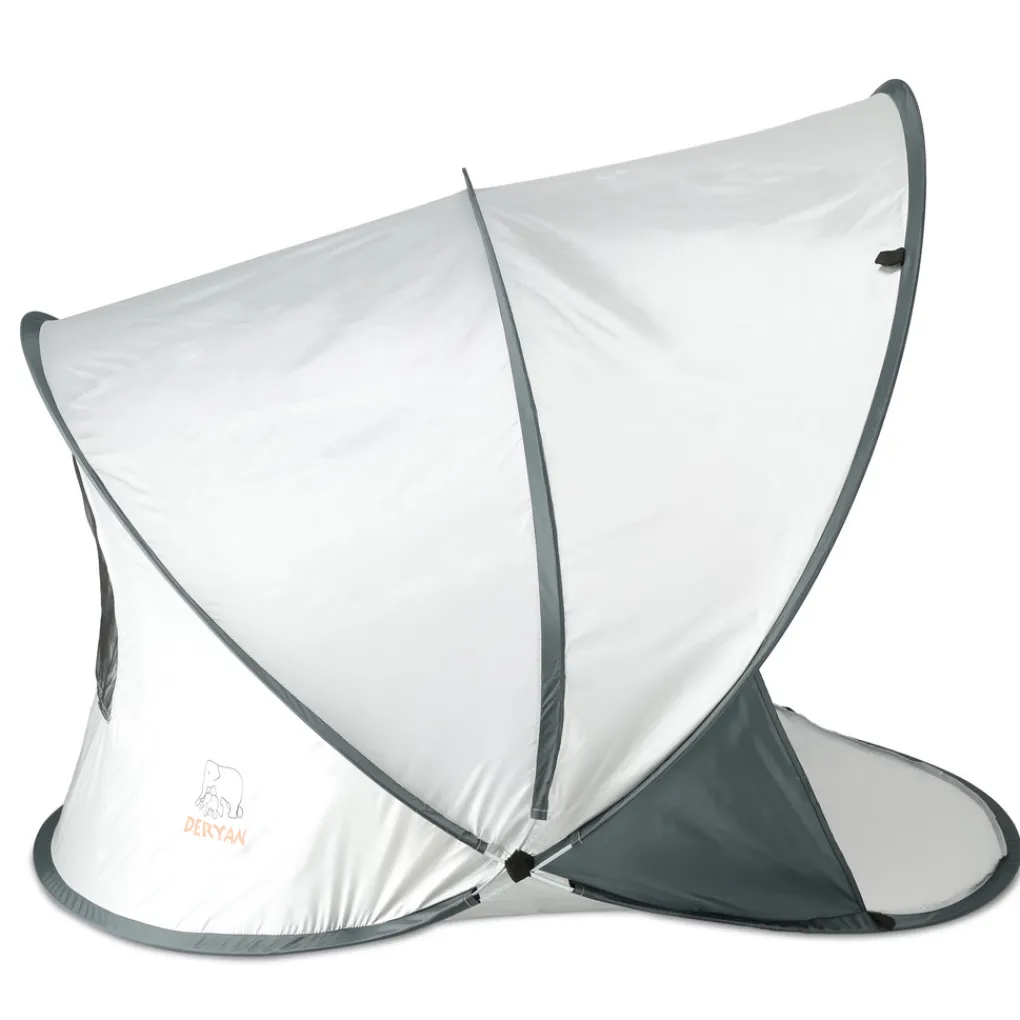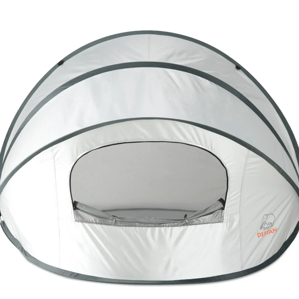 De XXL strandtent heeft een hellend ontwerp waardoor hij ook in de zon geplaatst kan worden. De pop-uptent is ontworpen met een snel in- en uitklapmechanisme. De tent heeft aan de achterkant lussen om de DERYAN tent vast te zetten met haringen, en hij heeft vakken om de stevigheid in het zand te optimaliseren.