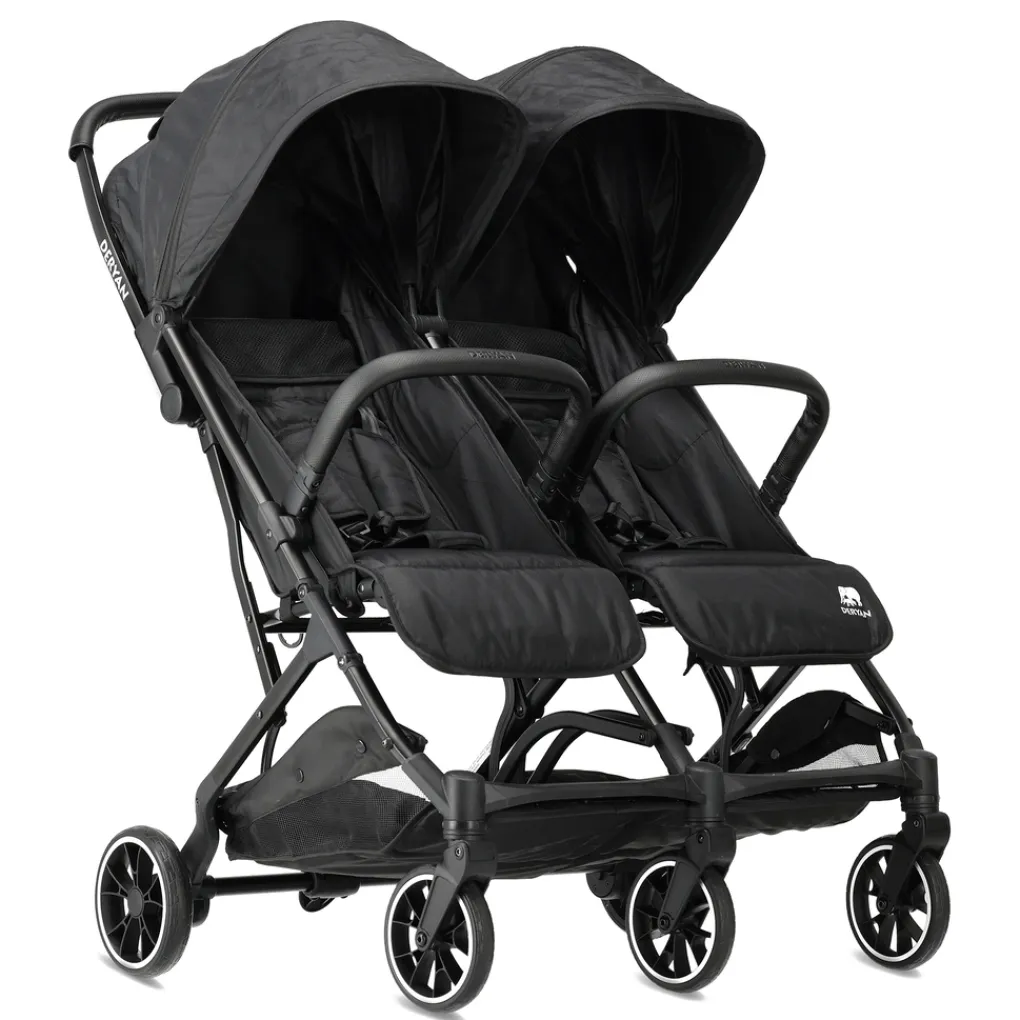 De DERYAN Rolo X2 biedt optimaal comfort, gemak en veiligheid. De twee zittingen zijn makkelijk schoon te maken met een doek. Beide zitjes beschikken over een 5-punts veiligheidsharnas, zodat jouw kinderen altijd veilig zitten. De grotere wielen zorgen voor stabiel en moeiteloos duwen. Het slimme remsysteem draagt bij aan veilig gebruik op elk terrein.