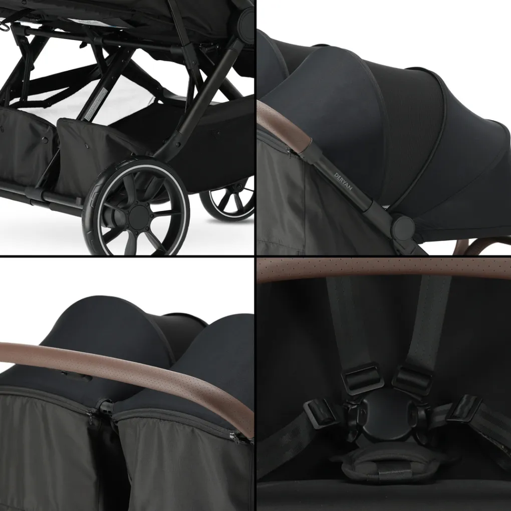De DERYAN Rolo X2 XL V2 biedt optimaal comfort, gemak en veiligheid. De twee zittingen zijn makkelijk af te nemen met een doek. Beide zitjes beschikken over een 5-punts veiligheidsharnas, waardoor jouw kinderen altijd veilig in de buggy zitten. Daarnaast heeft de buggy een gebruiksvriendelijk remsysteem dat bijdraagt aan ultiem gebruiksgemak en veiligheid tijdens het wandelen en reizen. De extra grote wielen zorgen voor moeiteloos duwen op elk terrein.