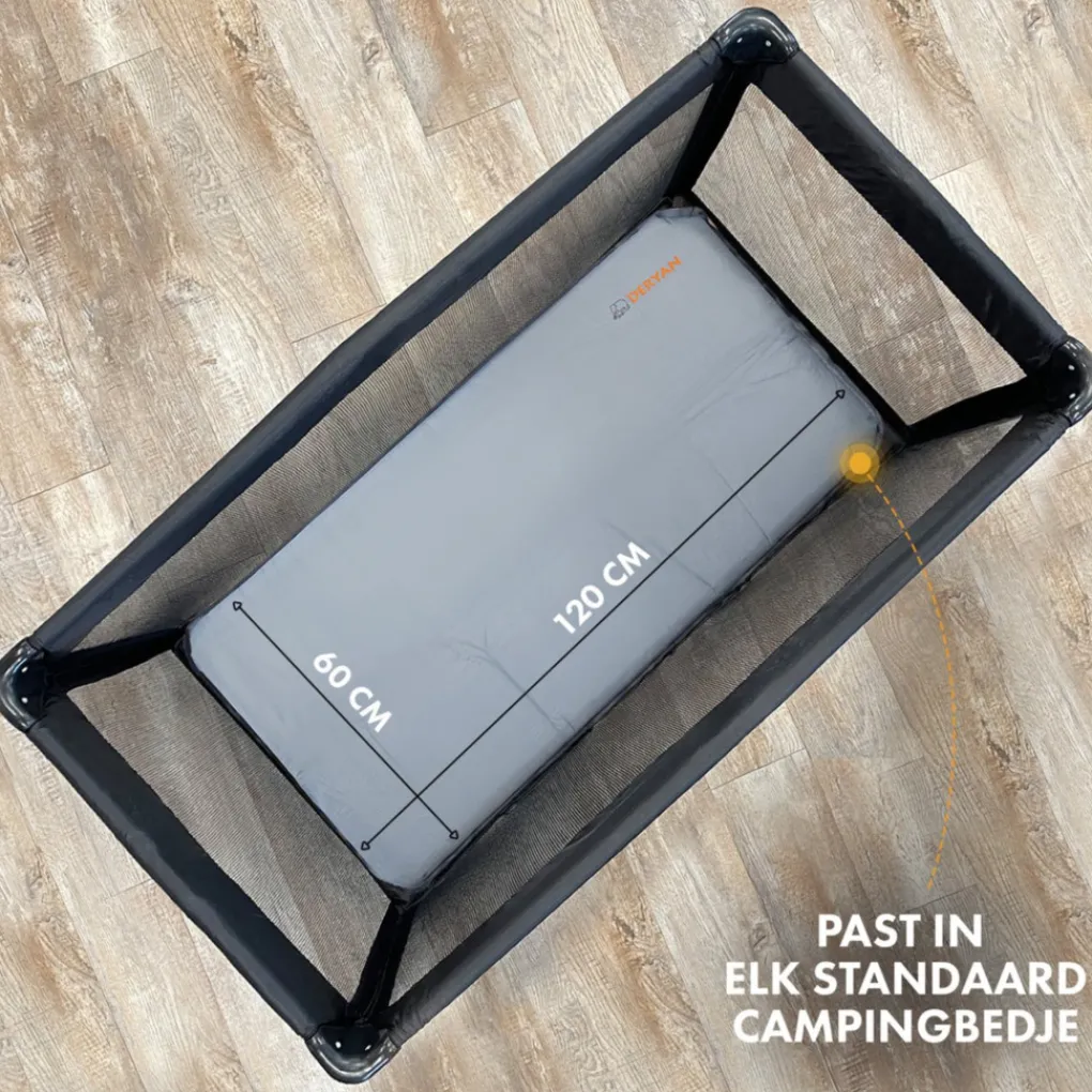 De luxe campingbedmatras van DERYAN is een comfortabele aanvulling op het standaardcampingbed.