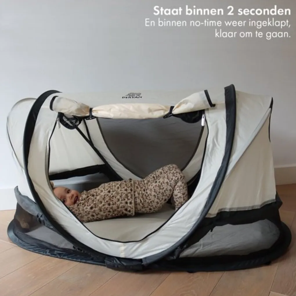 Dit compacte pop-up campingbedje weegt slechts 2 kilo, heeft het formaat van de Baby en alle voordelen van de Peuter. In de Shane Luxe ligt je dreumes of peuter beschermd tegen UV-stralen en vervelende insecten. Omdat slaap zo belangrijk is en ondernemende peuters ook ’s middags even moeten rusten, kan de Shane Luxe gedeeltelijk worden verduisterd – dat is prettig in lichtere ruimtes!