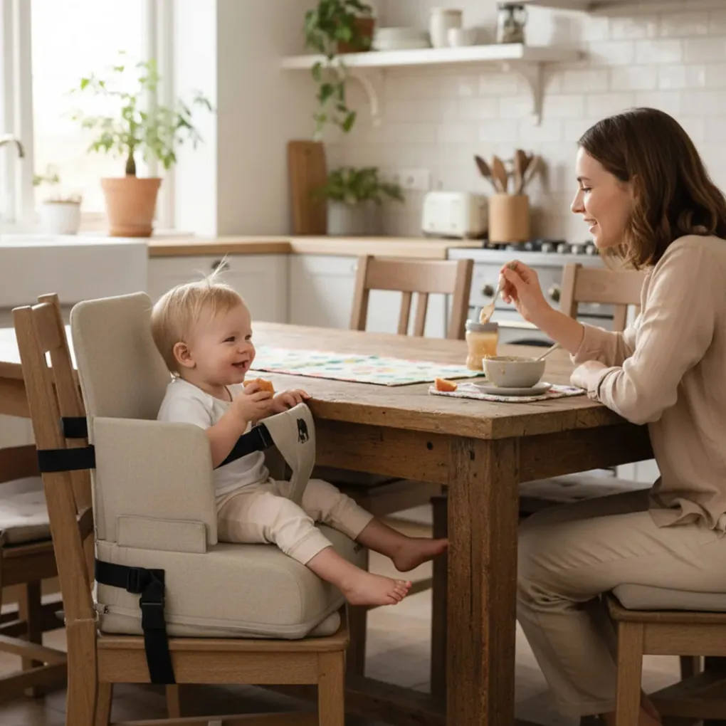 De Deryan Travel Booster zorgt ervoor dat je kindje overal veilig en comfortabel aan tafel kan zitten. Deze slimme stoelverhoger is compact, lichtgewicht en eenvoudig te bevestigen aan vrijwel iedere standaard eetkamerstoel. Perfect voor thuis, op vakantie of bij opa en oma.