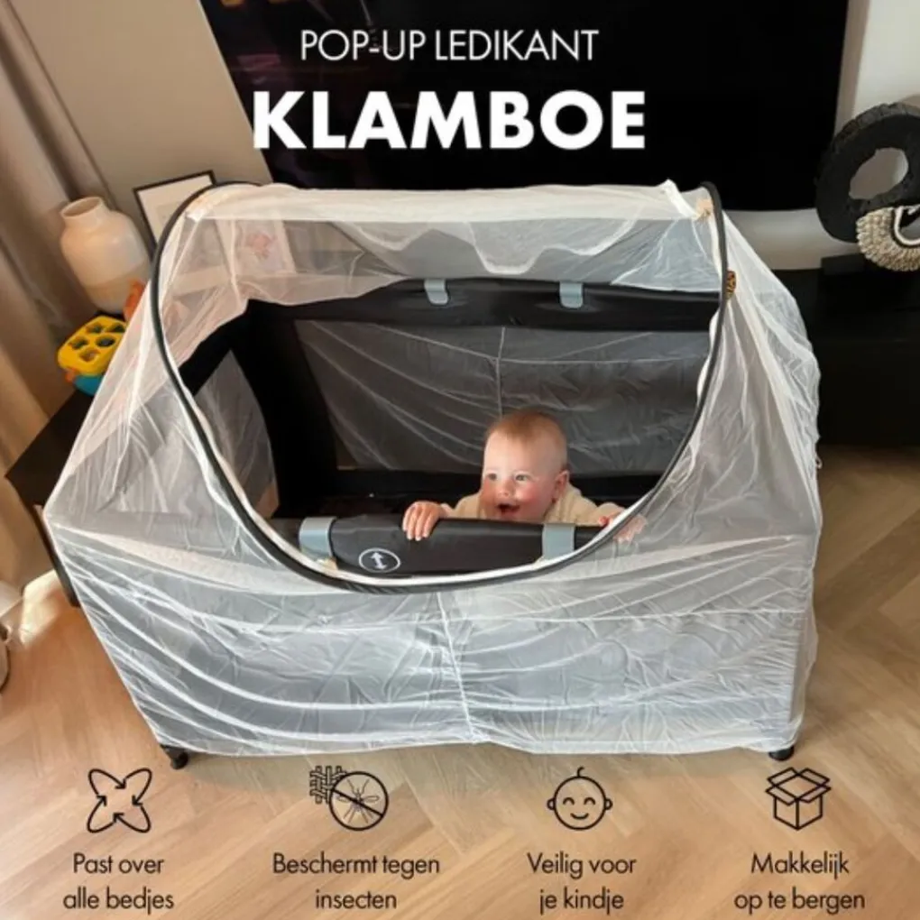 Dankzij het pop-up systeem staat de klamboe stevig en strak in een bolle vorm, waardoor de klamboe niet in het bedje kan vallen. Zo kan je kindje de klamboe dus niet naar zich toe trekken.