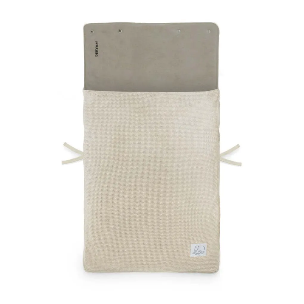 Dankzij zijn veelzijdigheid kan deze comfortabele voetenzak ook worden gebruikt in combinatie met een kinderwagen, waardoor je baby in een handomdraai warm en behaaglijk is ingepakt voor een ontspannen wandeling.