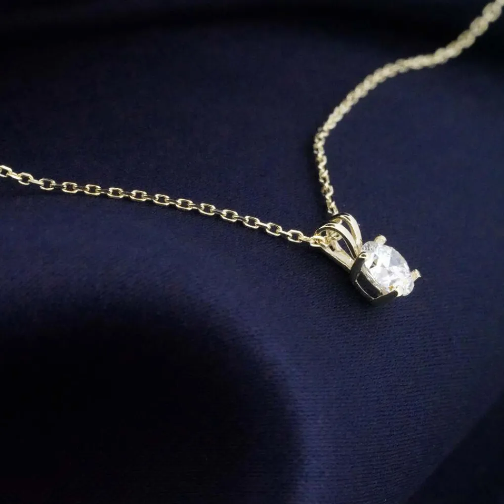 • 14K 585/000 gouden hanger en collier met 0.25 ct lab grown diamond met een diameter 4mm