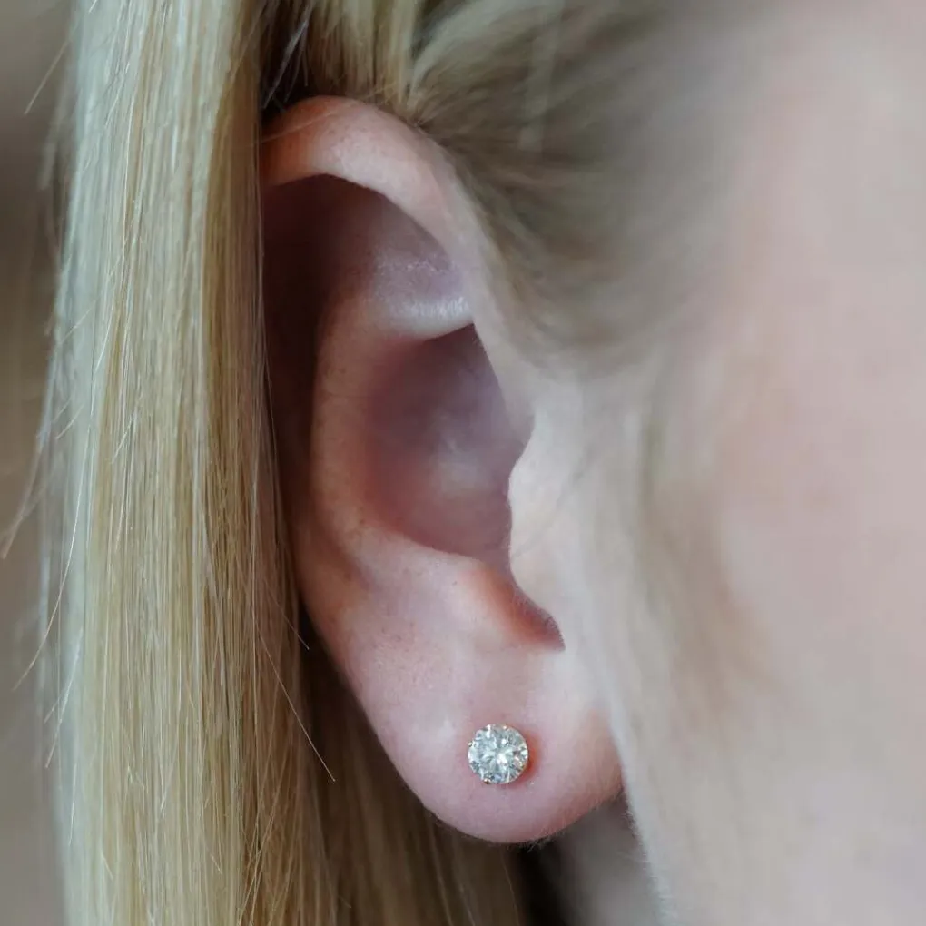 • 14K 585/000 gouden oorstekers met totaal 0.60 ct lab grown diamonds. Diameter ca. 4mm per steen.