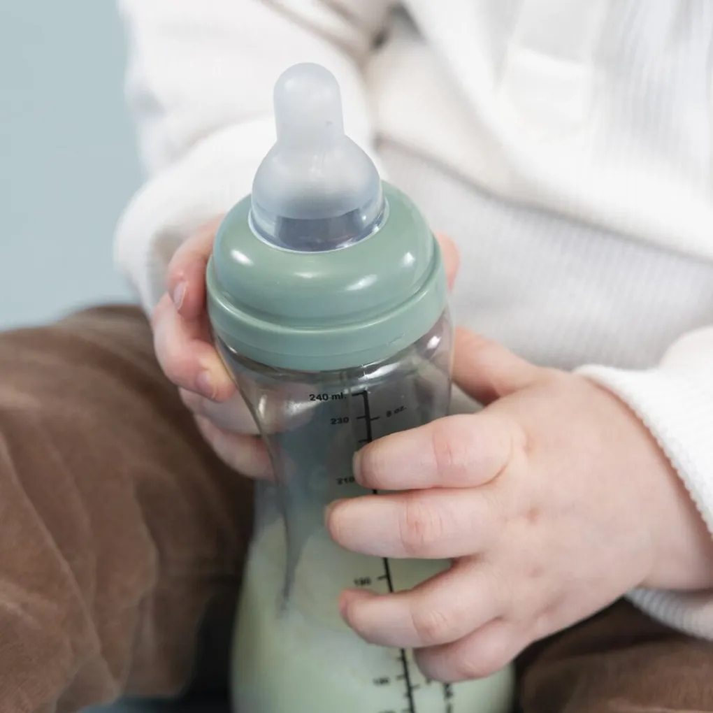 Dit bevordert de ontwikkeling van de motoriek. In de bodem van de handgreepfles zit een uniek anti-colic ventiel. Dit voorkomt vacuüm zuigen en vermindert de kans op boeren, spugen en darmkrampjes. De flessenspeen heeft een zachte afwerking.