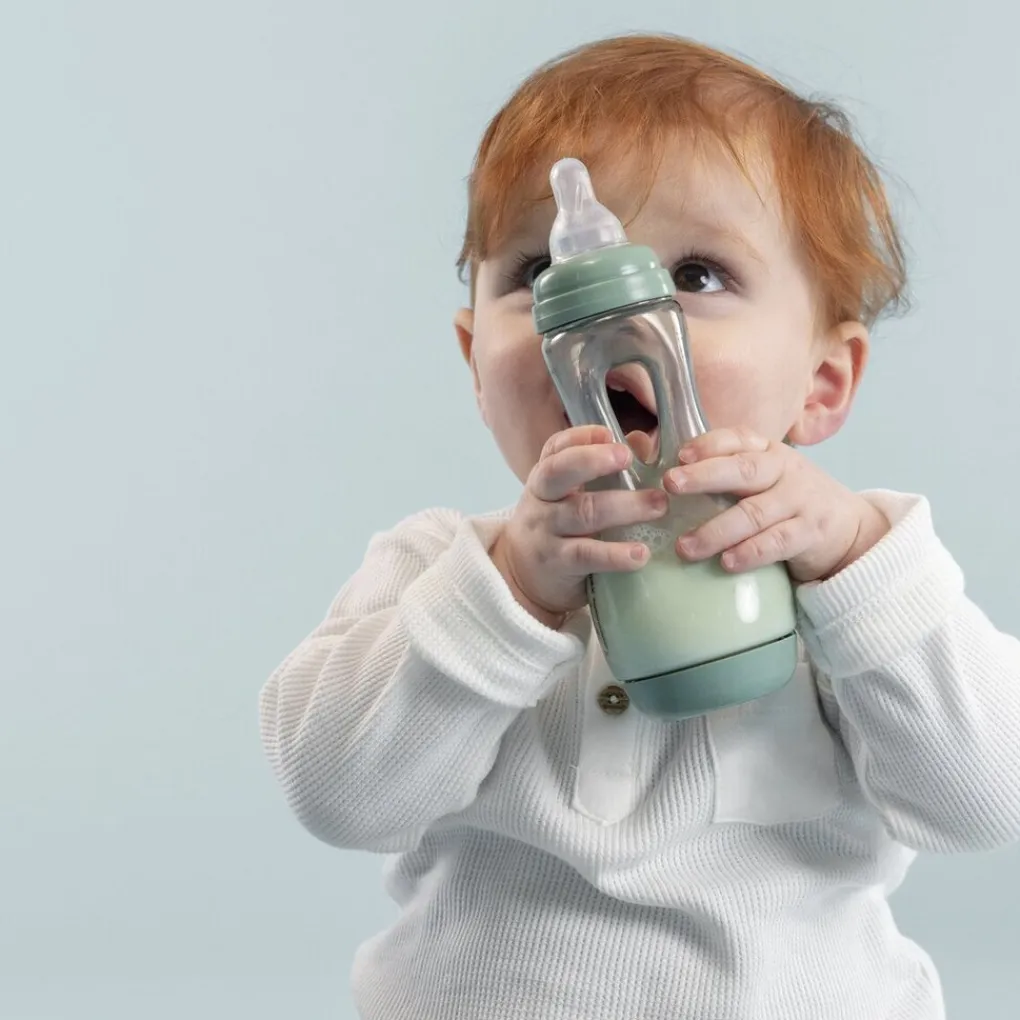 De Difrax Handgreepfles is geschikt vanaf het moment dat je kindje rechtop kan zitten en graag zelf uit de babyfles wilt drinken. Kinderen kunnen de fles gemakkelijk zelf vasthouden door de opening in het midden.