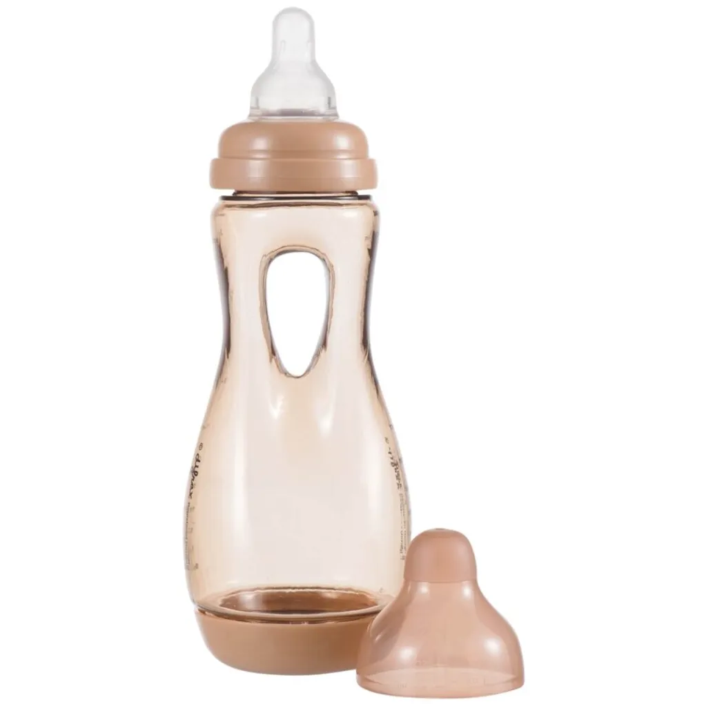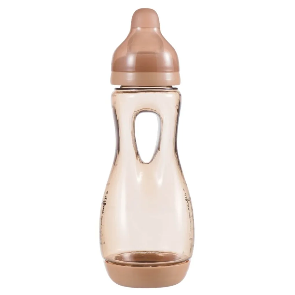 De Difrax Handgreepfles is geschikt vanaf het moment dat je kindje rechtop kan zitten en graag zelf uit de babyfles wilt drinken. Kinderen kunnen de fles gemakkelijk zelf vasthouden door de opening in het midden.