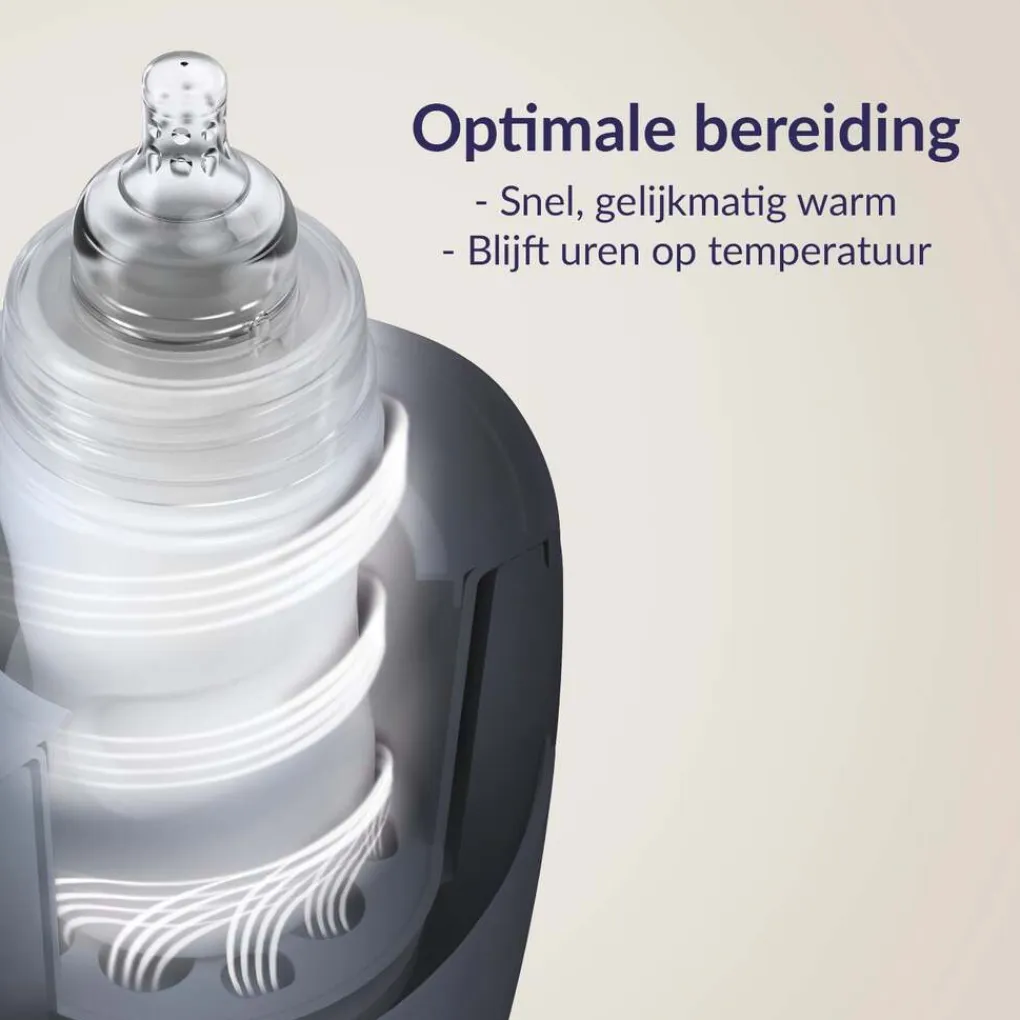 •Snel: De flessenwarmer verwarmt een fles in 2 minuten (80 ml melk/water met een starttemperatuur van 21°C)