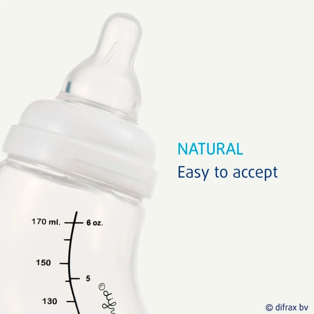 De Difrax Natural flessenspeen past op alle varianten van de Difrax Natural S-fles (170 ml en 250 ml) en de Difrax handgreepflessen. Ook passen ze op Dr. Brown’s flessen en op andere merken smalle babyflessen.
