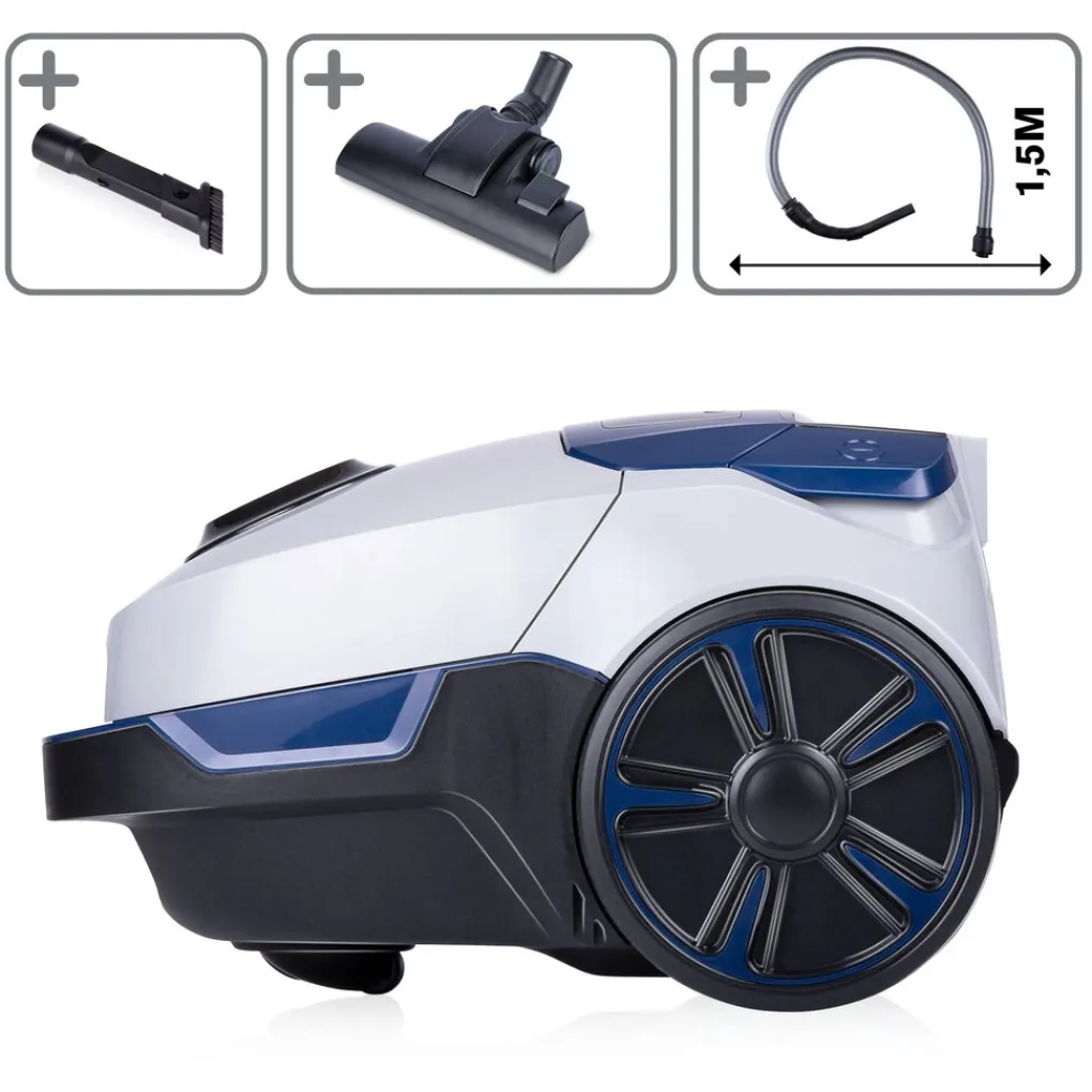 De Dirt Devil stofzuiger met zak wordt geleverd met een combiborstel en kierenzuigmond. Met de combiborstel en telescopische steel maak je dankzij het aanpasbare zuigvermogen gemakkelijk en snel verschillende vloertypes stof en vuil vrij. Gebruik vervolgens de kierenzuigmond om op anders moeilijk bereikbare plekken te komen. Daarnaast kun je met de kierenzuigmond ook prima het interieur van je auto schoonmaken. Dankzij een stroomkabel van 5 meter, een bereik van 7,5 meter en een gewicht van 5,5 kilogram neem je de stofzuiger gemakkelijk overal mee naar toe. Na gebruik rol je de snoer van de stofzuiger met zak makkelijk en snel op met behulp van het geïntegreerde snoeroprolsysteem. Tot slot maakt de stofzuiger met 72 decibel relatief weinig geluid in vergelijking tot andere stofzuigers.