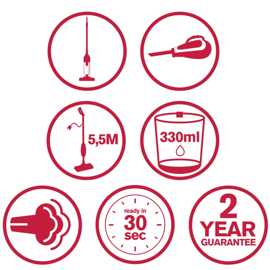 De stoomreiniger heeft een netsnoer van 5 meter. Hierdoor krijgt de stoomdweil een maximaal bereik van 5,5 meter. Dit houdt in dat je de stoommop op grote oppervlakken kunt gebruiken zonder dat je van stopcontact hoeft te wisselen. Door de buigbare steel van de stoomdweil te verwijderen tover je het apparaat binnen een handomdraai om in een handstomer. Tot slot is de stoomreiniger van Dirt Devil IPX4 gecertificeerd. Dit betekent dat het mechanisme van de stoommop bestand is tegen opspattend water uit verschillende richtingen.