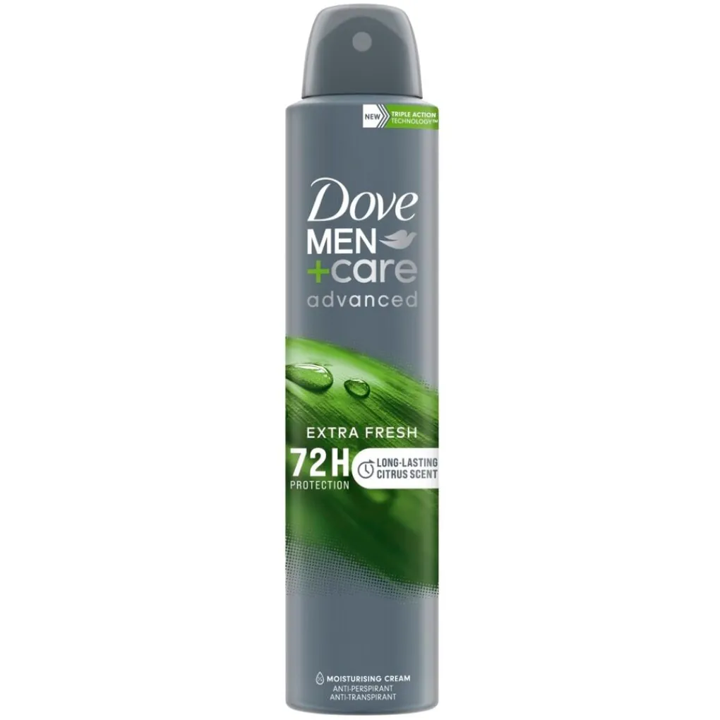 Ervaar een fris en droog gevoel met Dove Men+Care Advanced Extra Fresh Antitranspirant Spray. Deze antitranspirant biedt 72 uur lang krachtige bescherming tegen zweet.