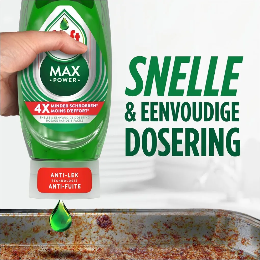 Gebruik Dreft MaxPower Vloeibaar Afwasmiddel voor het eenvoudig en moeiteloos schoonmaken van zelfs je vuilste potten en pannen.