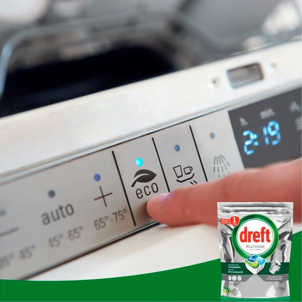Voordelen van de Dreft Platinum All in One Lemon Vaatwascapsules Jaarvolume: