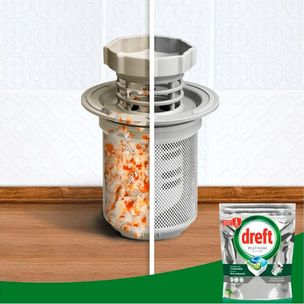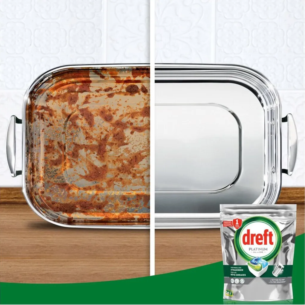 • Dreft Platinum capsules pakken moeilijke schoonmaakproblemen de eerste keer aan