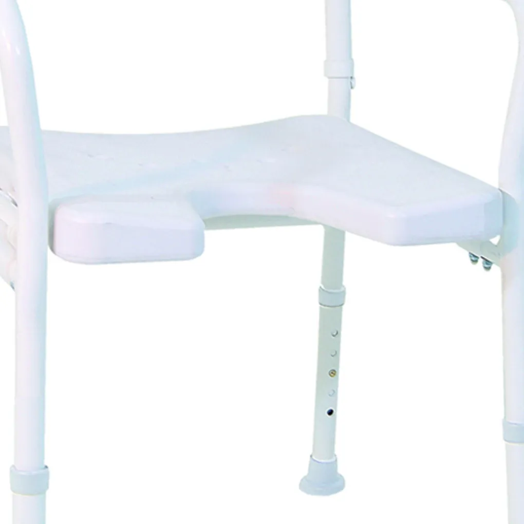 Deze douchestoel is ontworpen met het oog op gebruiksgemak, veiligheid en stabiliteit. De zithoogte is verstelbaar in vijf standen dankzij de uitschuifbare poten, waardoor gebruikers hun ideale zithoogte kunnen vinden. Rubberen voetjes zorgen voor een stevige en veilige stand op verschillende ondergronden.