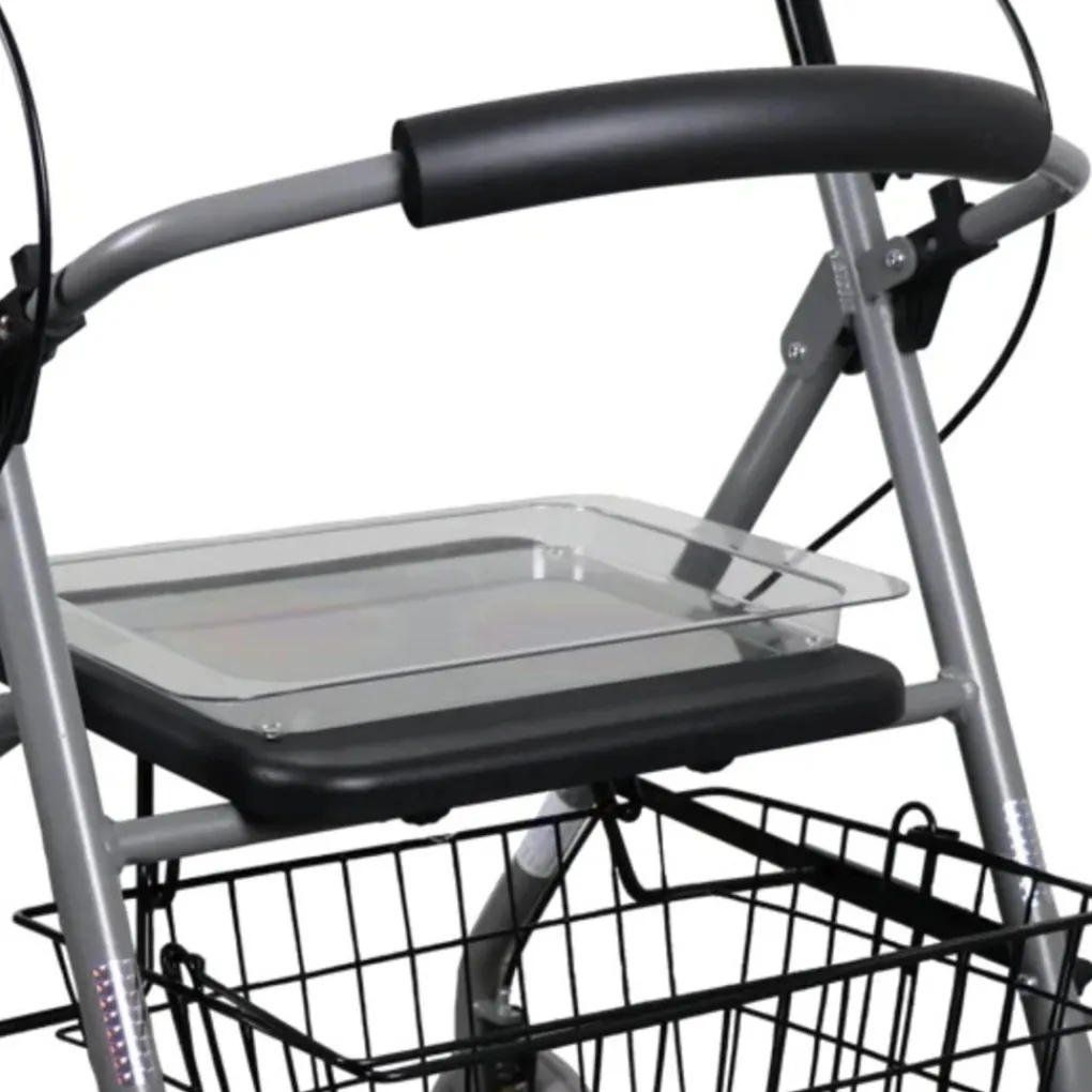 Standaard wordt de Gigo 2G geleverd met handige accessoires: een mand voor persoonlijke spullen, een dienblad voor het dragen van eten of andere voorwerpen, een stokhouder voor extra gemak en een kantelhulp die helpt bij veilig zitten en opstaan. Deze combinatie van functionaliteit en comfort maakt de Gigo 2G een ideale rollator voor zowel thuis als onderweg.